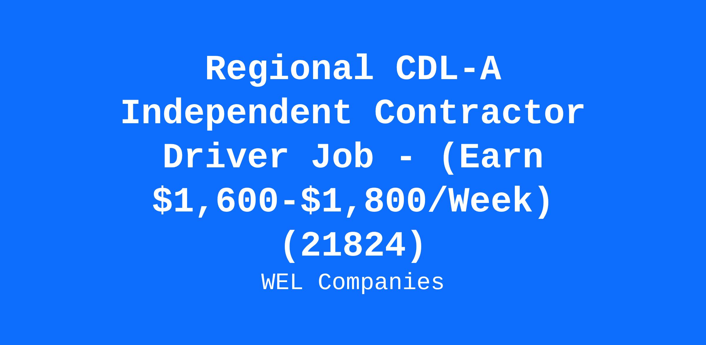 Regional CDL-A Independent Contractor Driver Job - (Earn $1,600-$1,800/Week) (21824)
