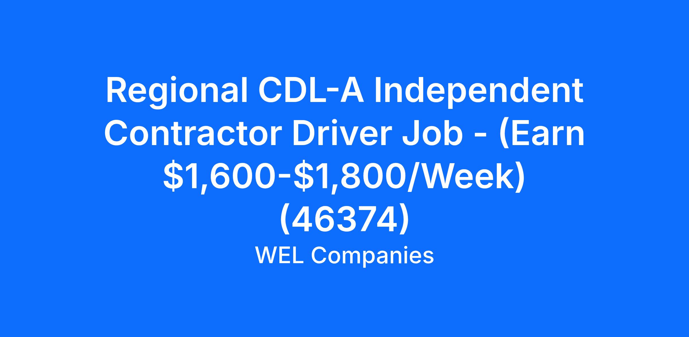 Regional CDL-A Independent Contractor Driver Job - (Earn $1,600-$1,800/Week) (46374)