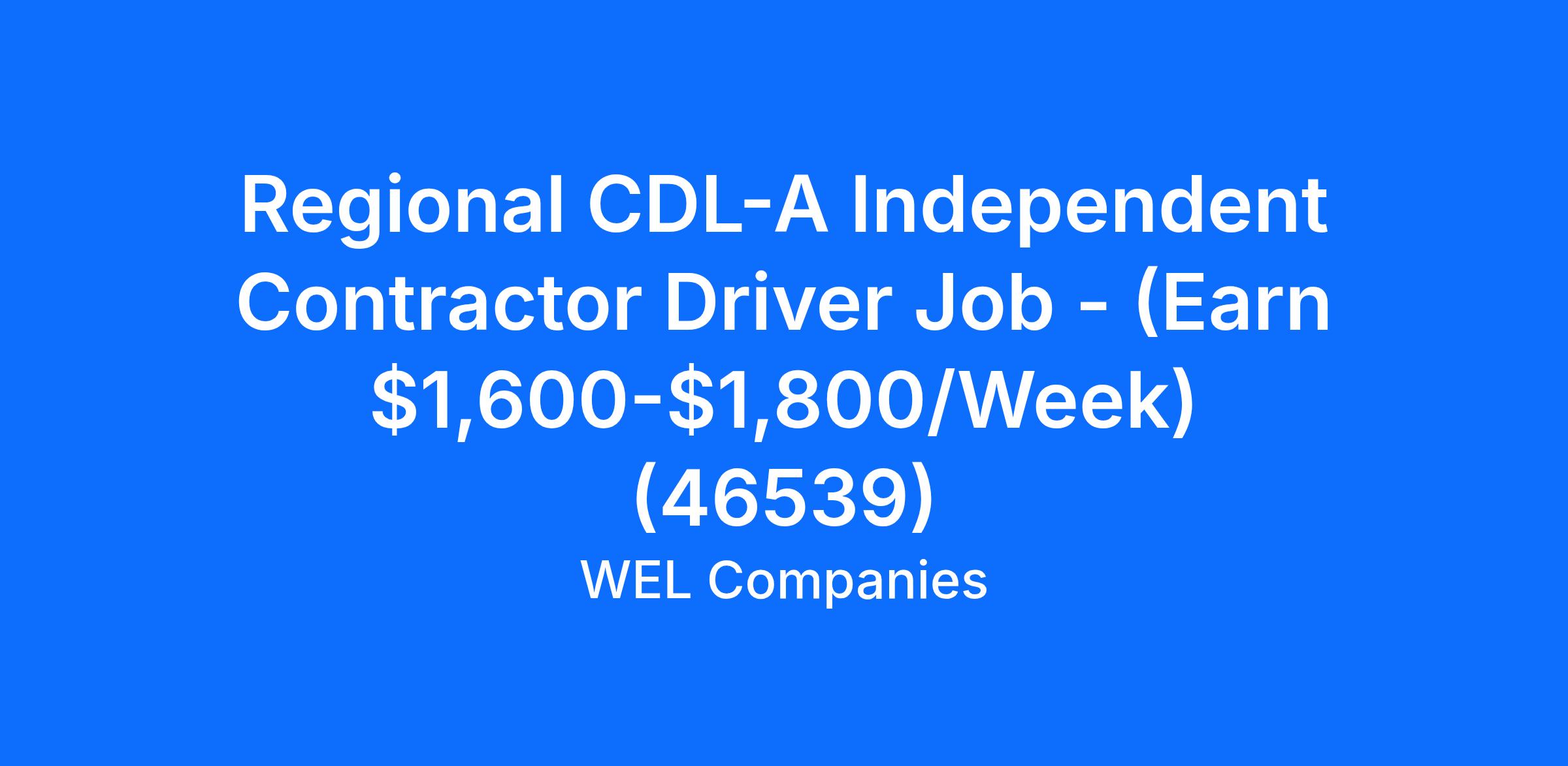 Regional CDL-A Independent Contractor Driver Job - (Earn $1,600-$1,800/Week) (46539)