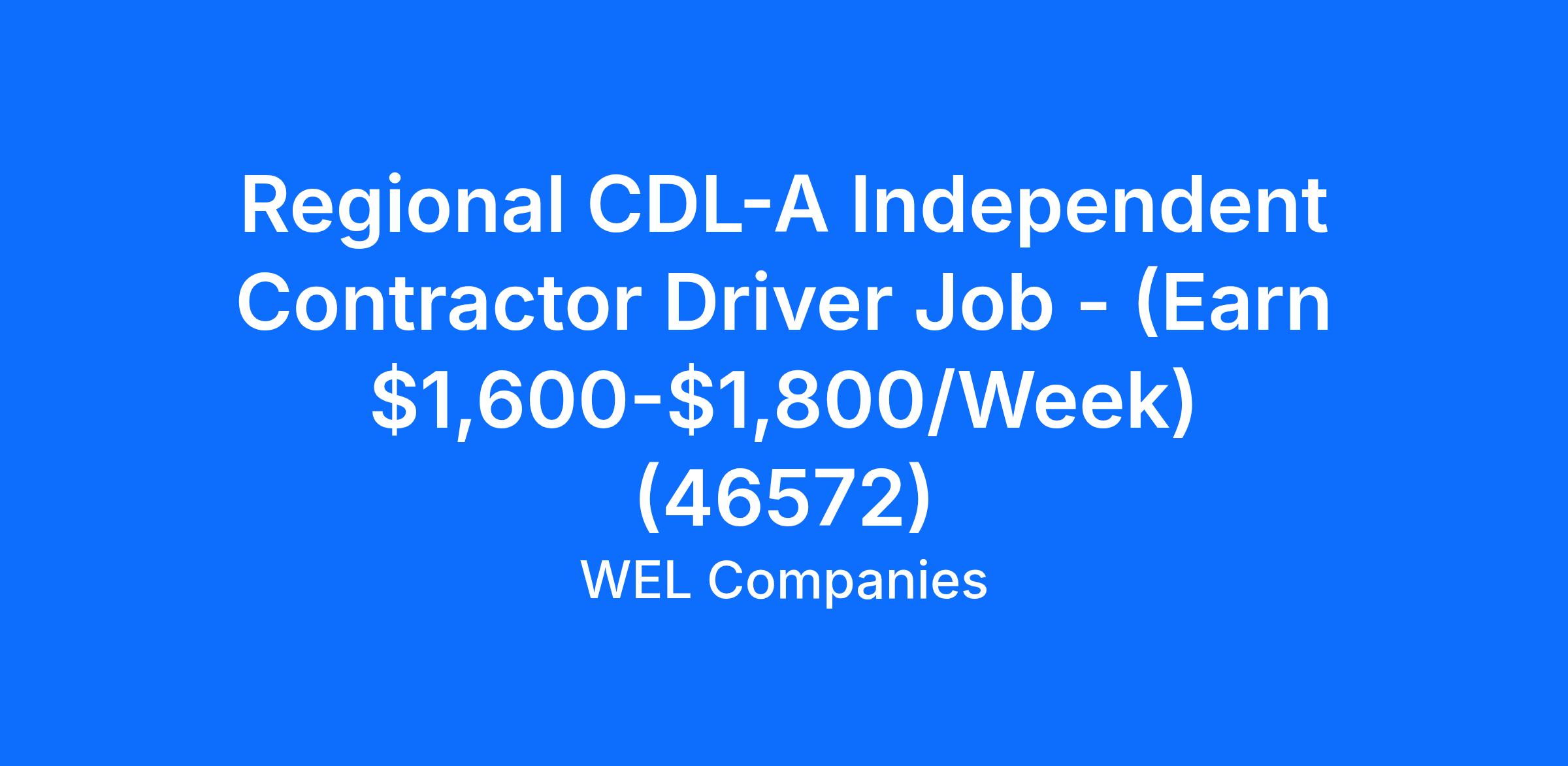 Regional CDL-A Independent Contractor Driver Job - (Earn $1,600-$1,800/Week) (46572)