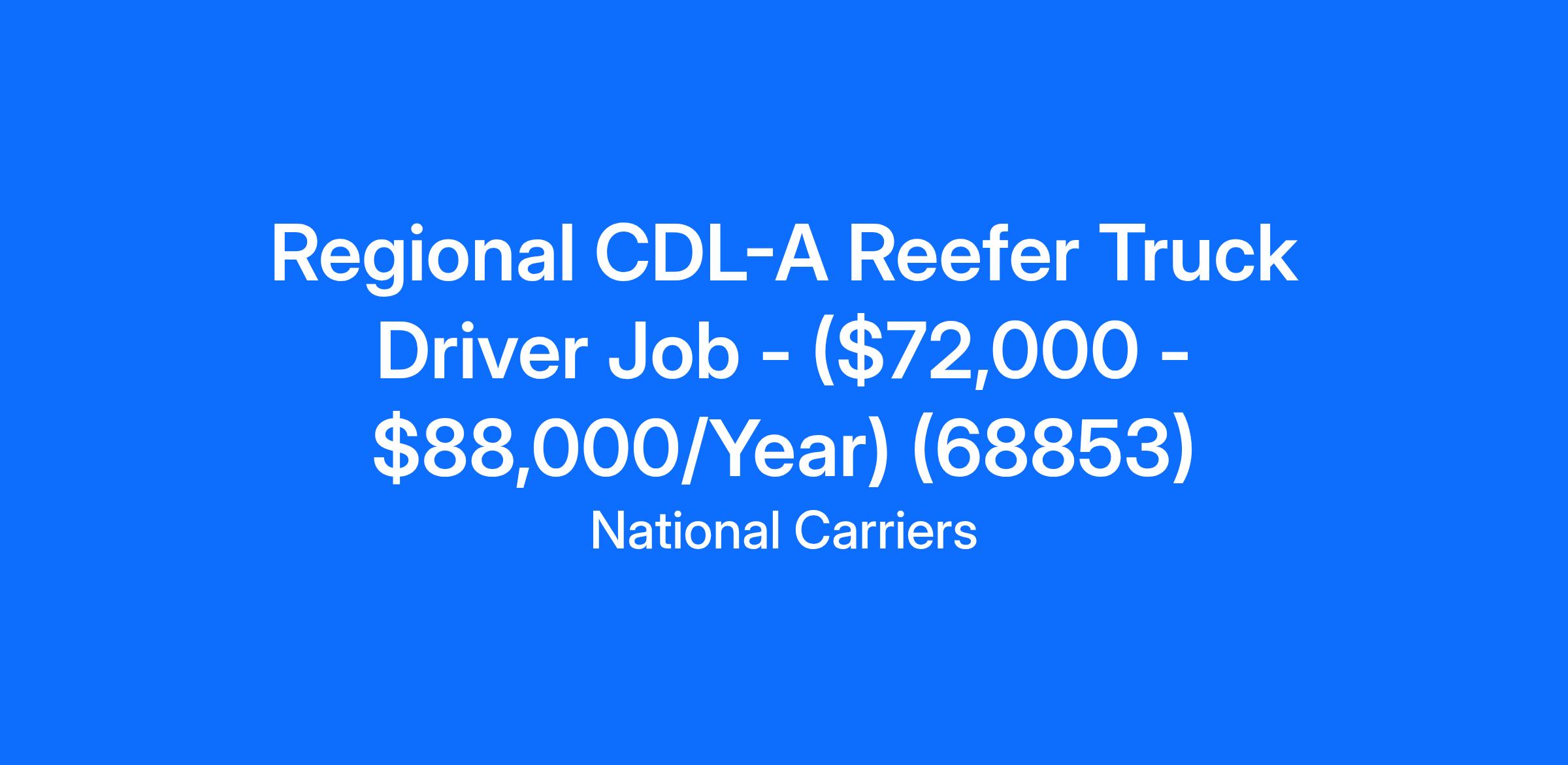 Regional CDL-A Reefer Truck Driver Job - ($72,000 - $88,000/Year) (68853)