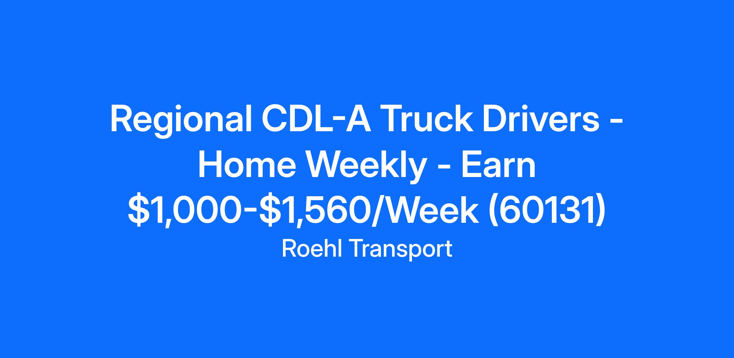 Regional CDL-A Truck Drivers - Home Weekly - Earn $1,000-$1,560/Week (60131)