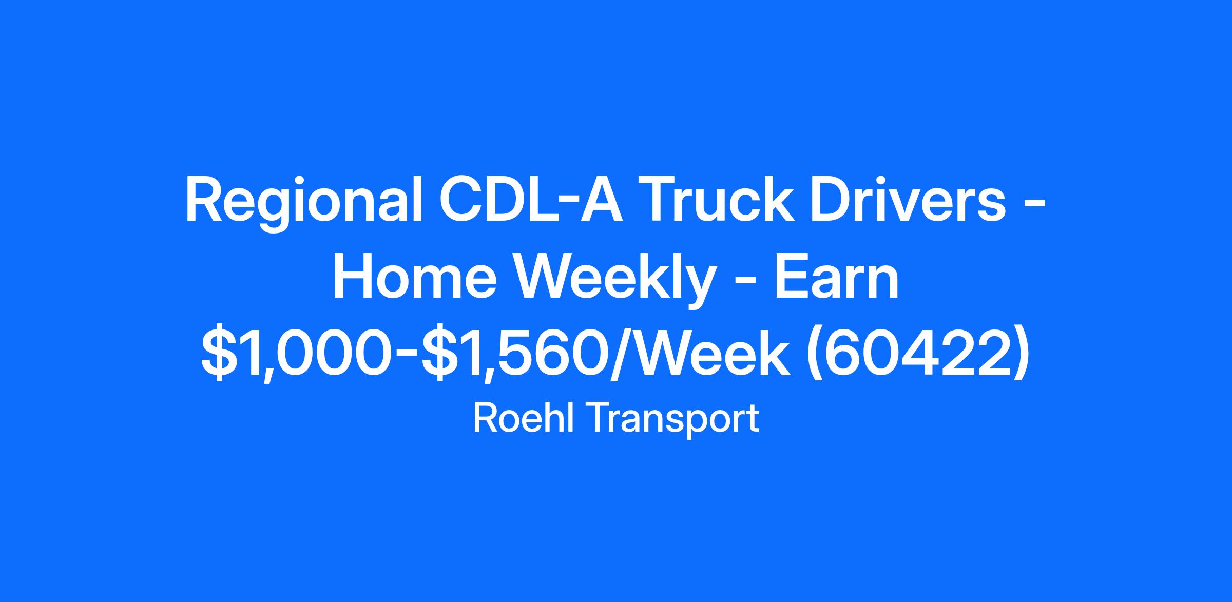 Regional CDL-A Truck Drivers - Home Weekly - Earn $1,000-$1,560/Week (60422)