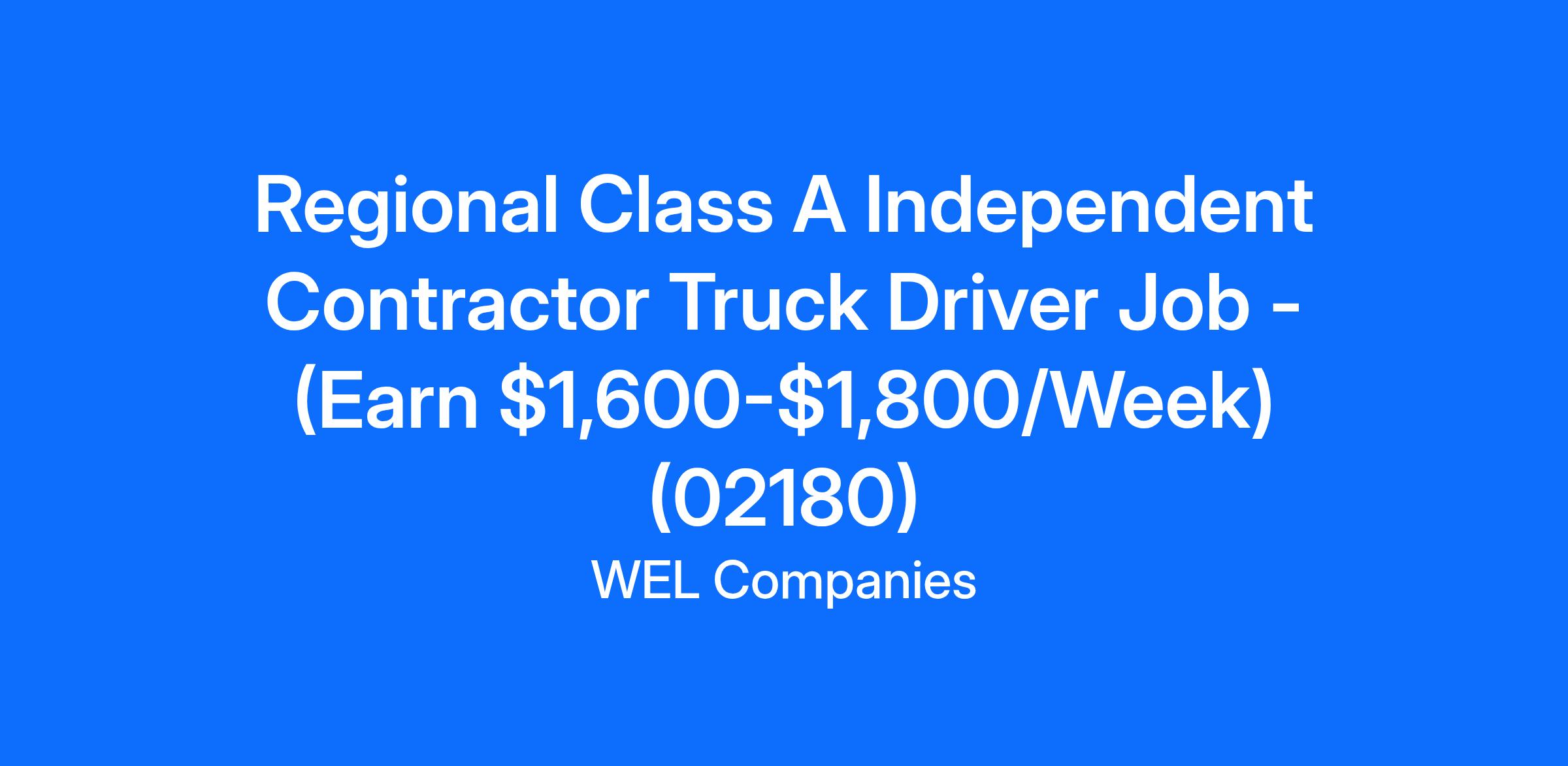 Regional Class A Independent Contractor Truck Driver Job - (Earn $1,600-$1,800/Week) (02180)