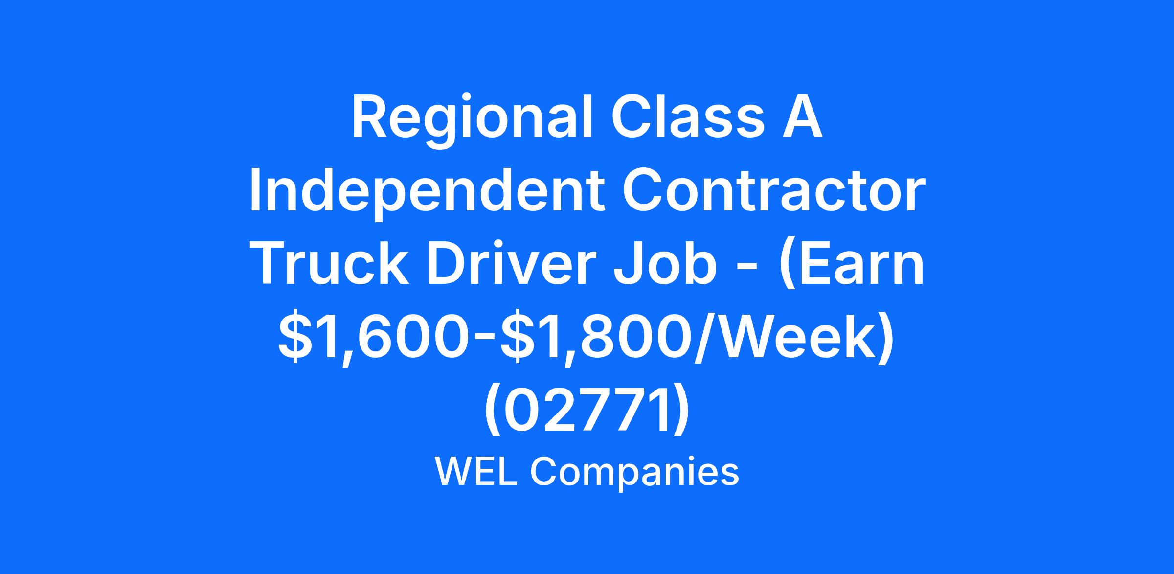 Regional Class A Independent Contractor Truck Driver Job - (Earn $1,600-$1,800/Week) (02771)