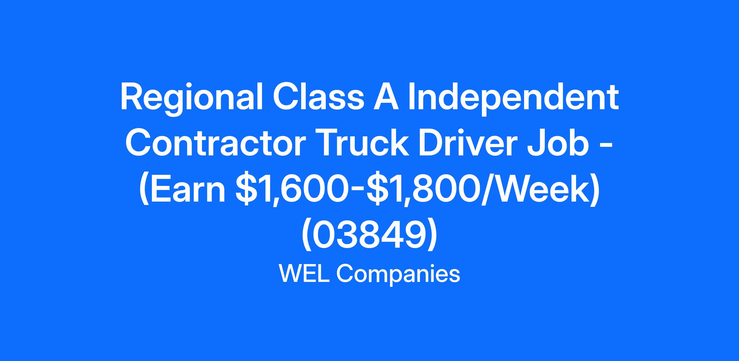 Regional Class A Independent Contractor Truck Driver Job - (Earn $1,600-$1,800/Week) (03849)