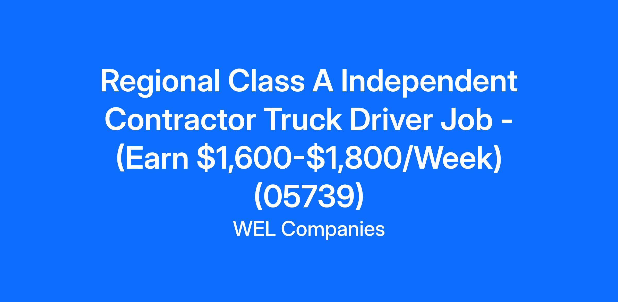 Regional Class A Independent Contractor Truck Driver Job - (Earn $1,600-$1,800/Week) (05739)