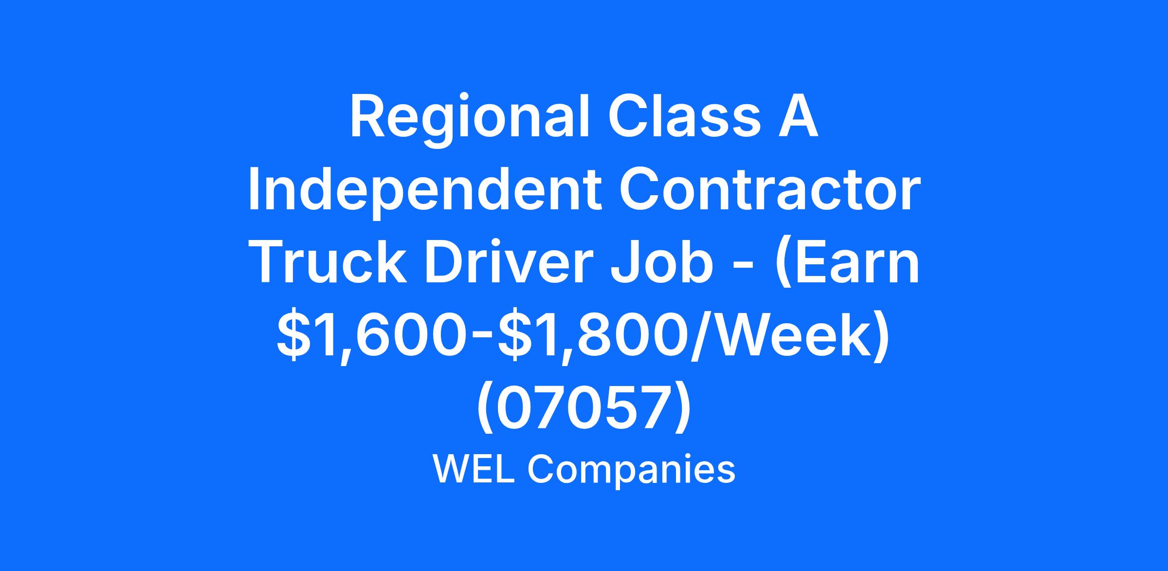 Regional Class A Independent Contractor Truck Driver Job - (Earn $1,600-$1,800/Week) (07057)