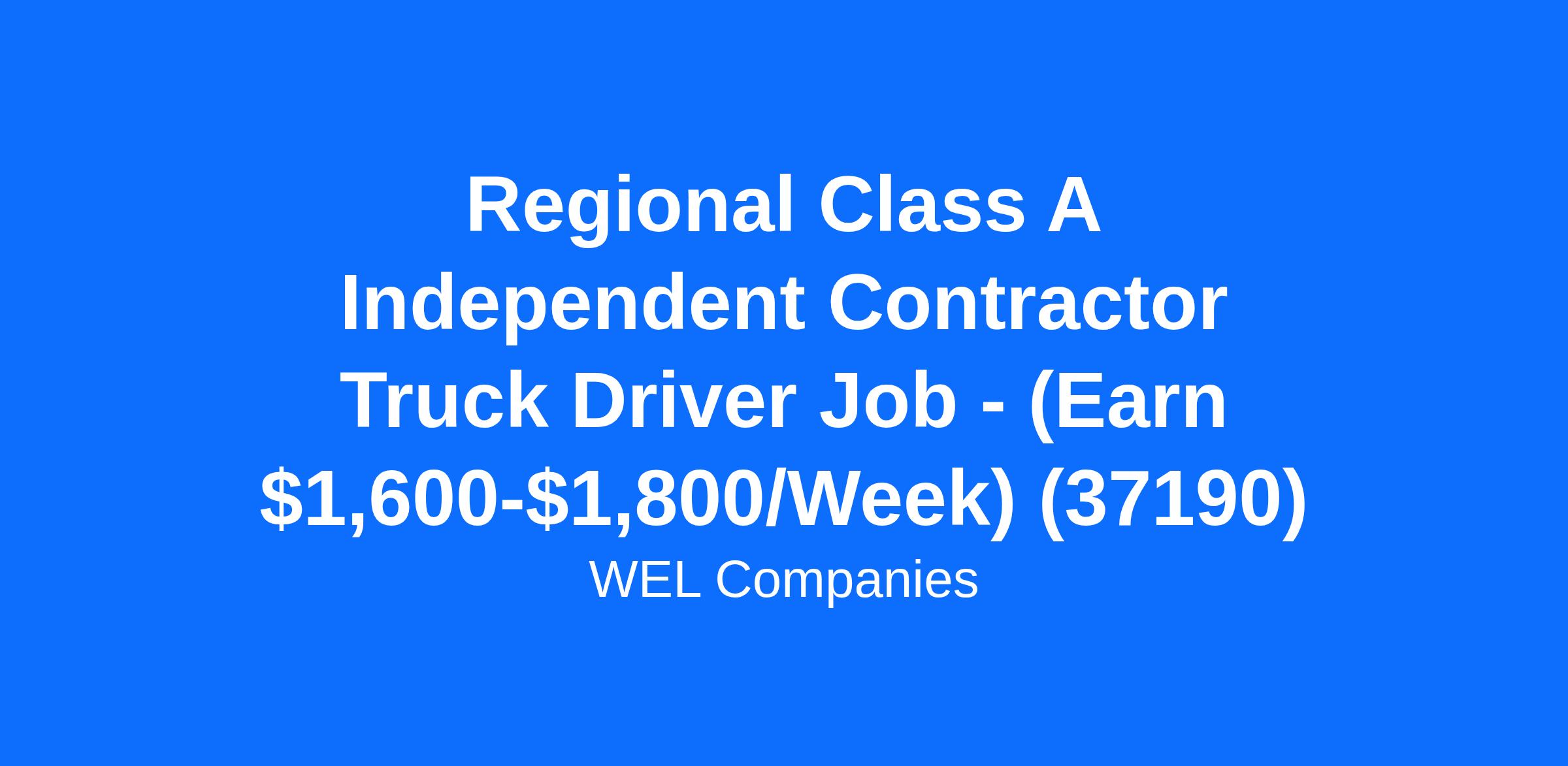Regional Class A Independent Contractor Truck Driver Job - (Earn $1,600-$1,800/Week) (37190)