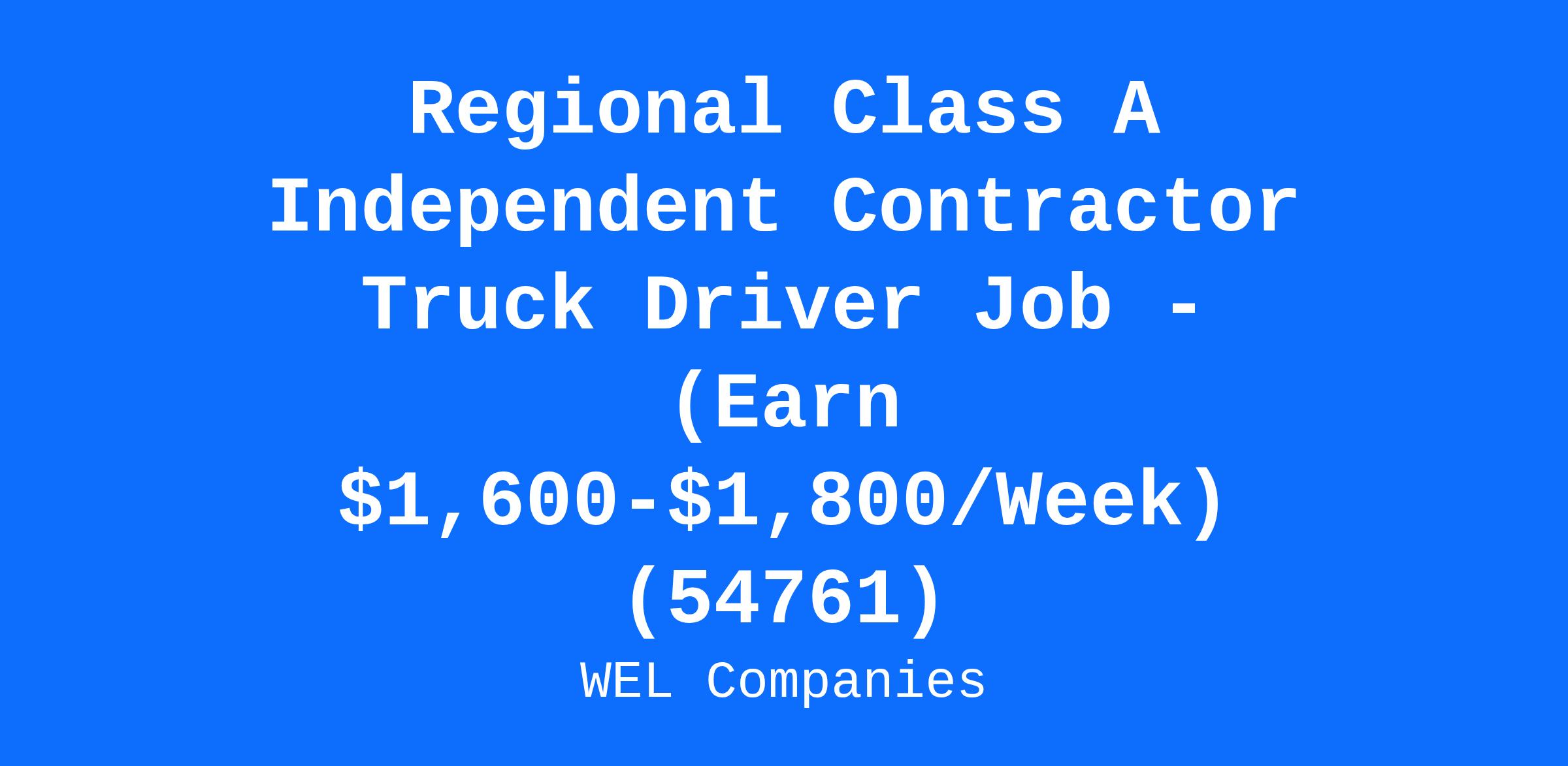 Regional Class A Independent Contractor Truck Driver Job - (Earn $1,600-$1,800/Week) (54761)