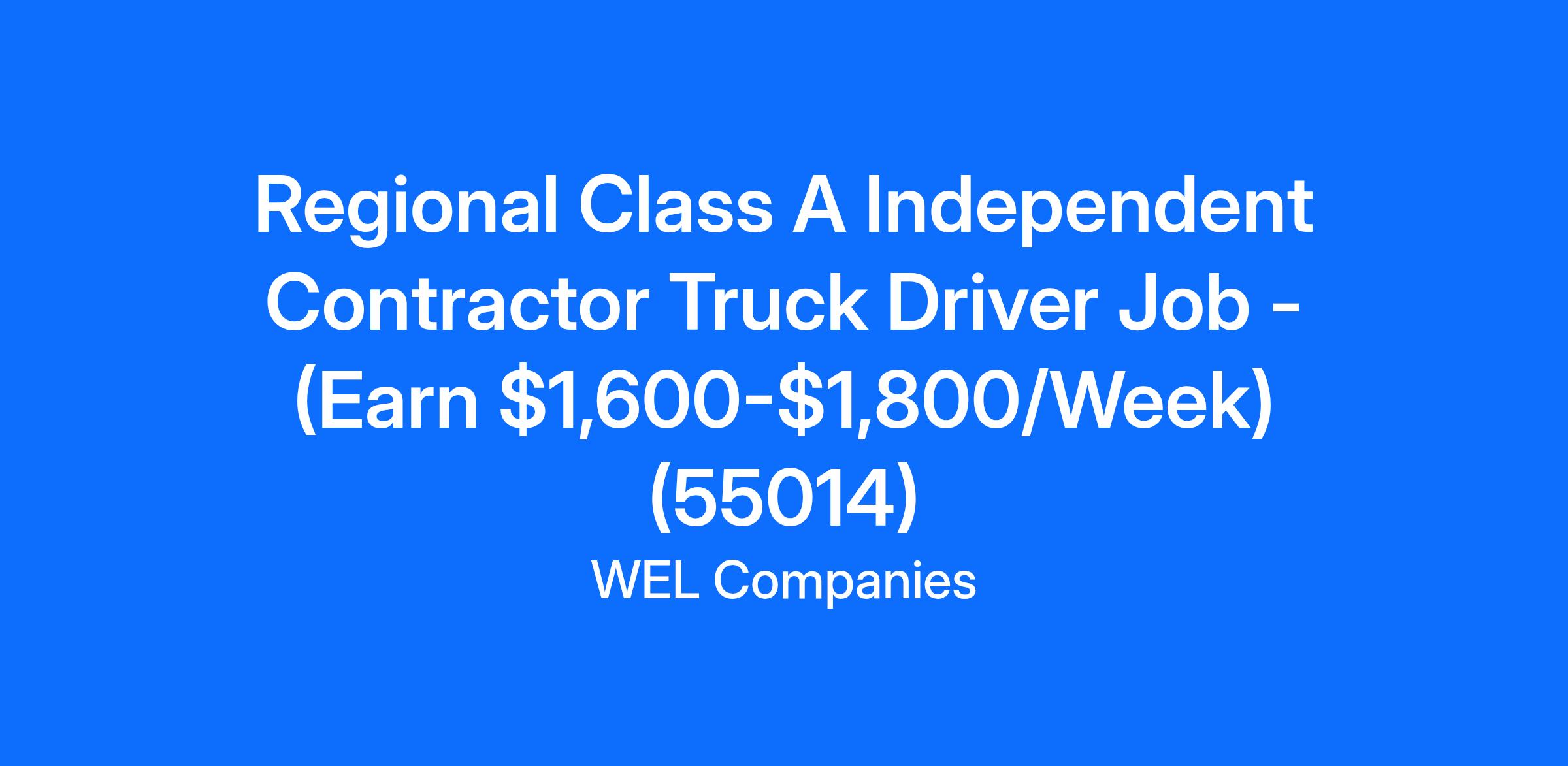Regional Class A Independent Contractor Truck Driver Job - (Earn $1,600-$1,800/Week) (55014)
