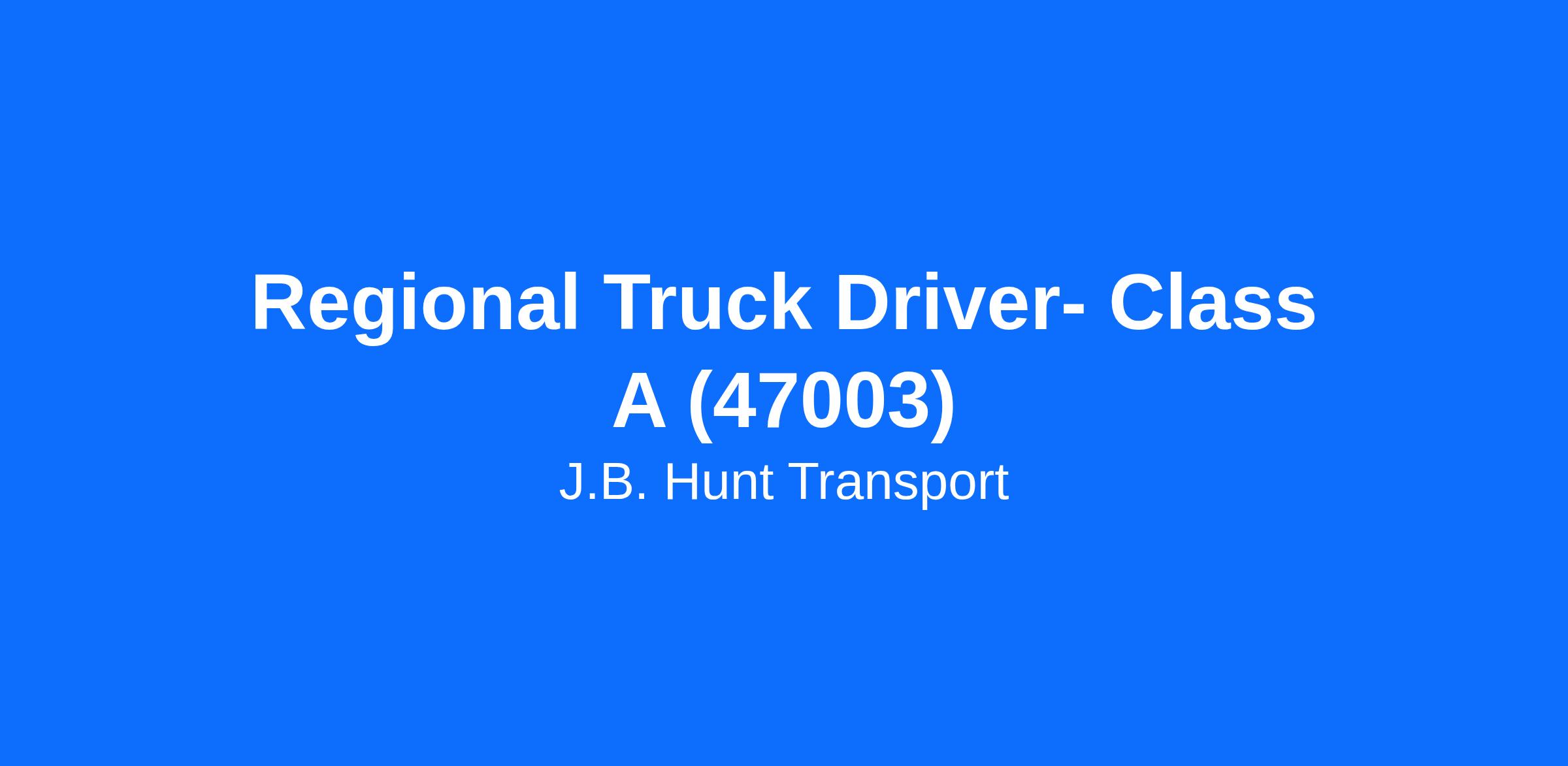 Regional Truck Driver- Class A (47003)