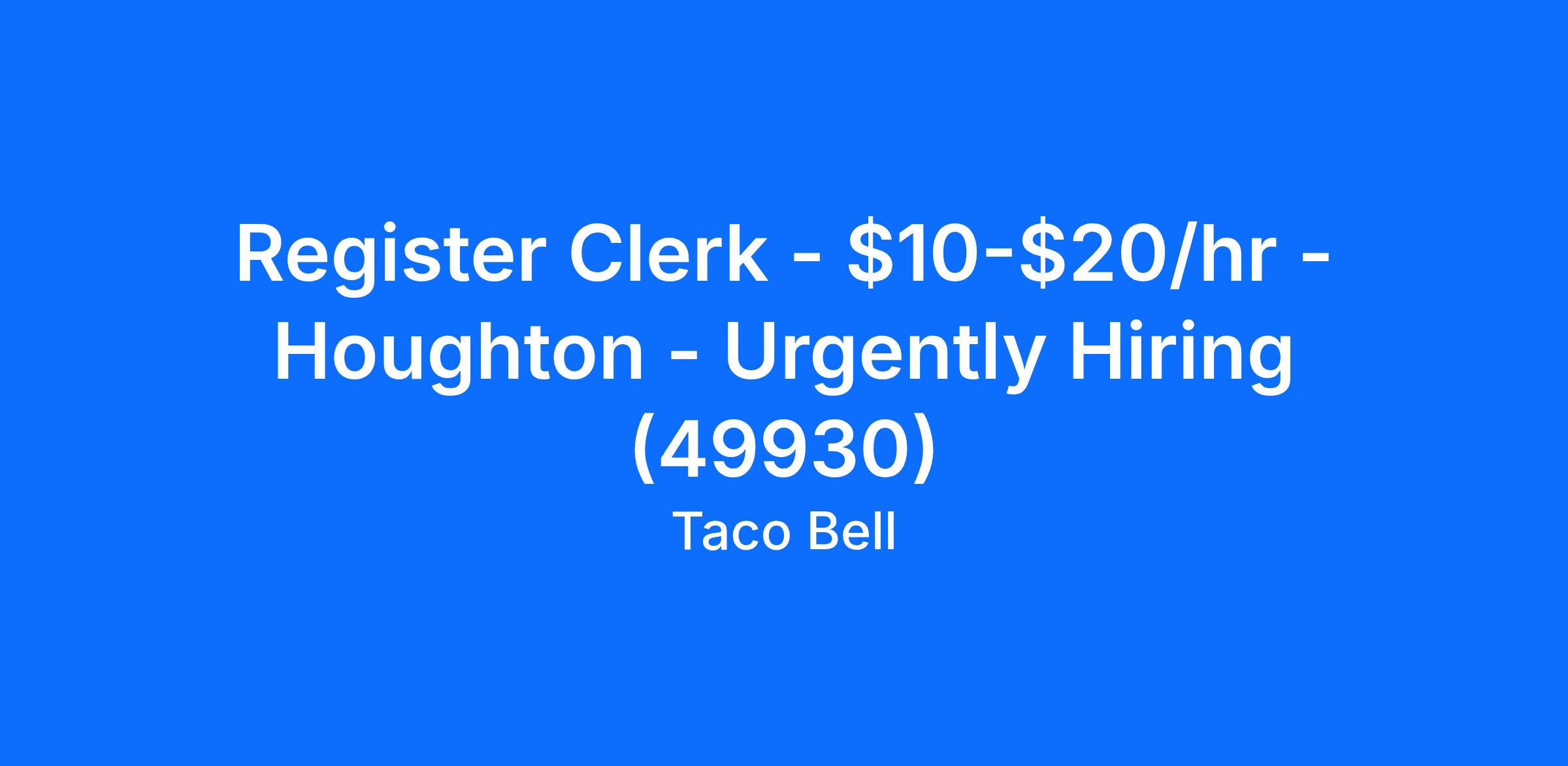 Register Clerk - $10-$20/hr - Houghton - Urgently Hiring (49930)
