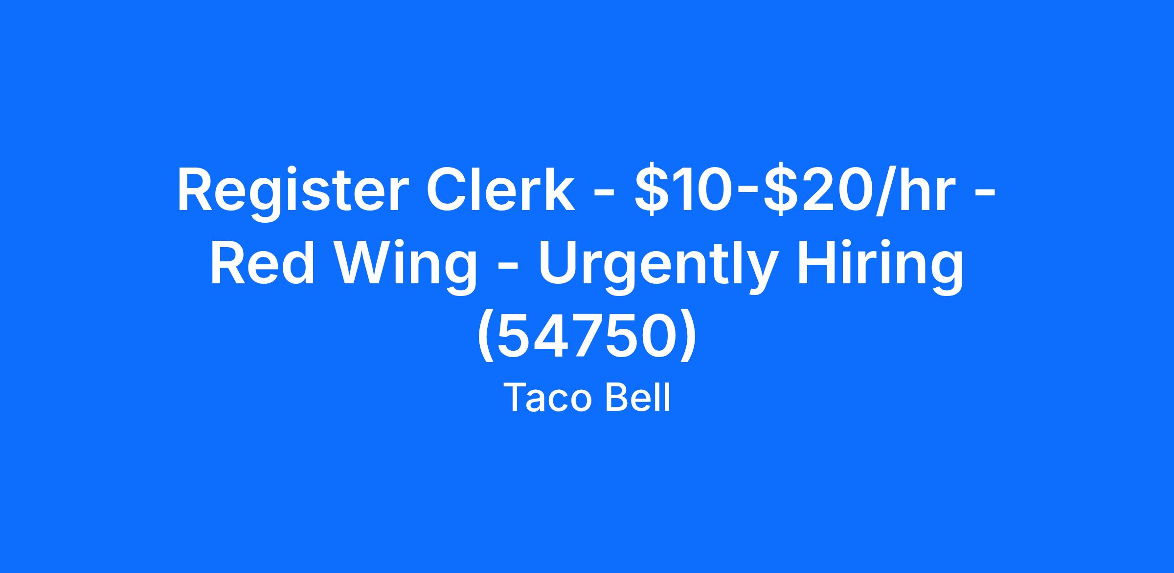 Register Clerk - $10-$20/hr - Red Wing - Urgently Hiring (54750)