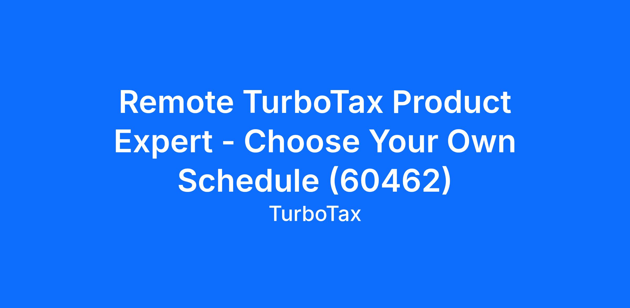 Remote TurboTax Product Expert - Choose Your Own Schedule (60462)