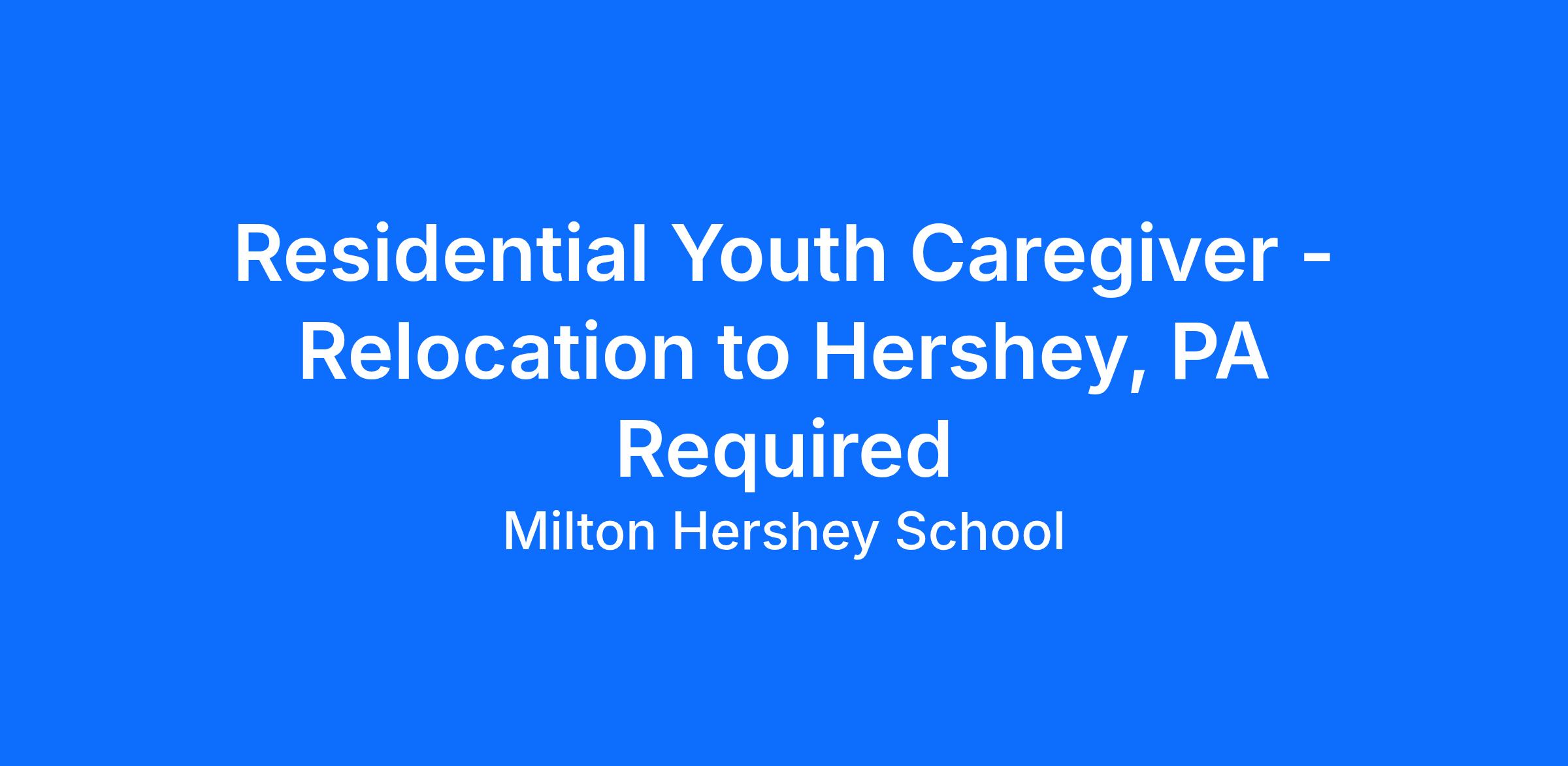 Residential Youth Caregiver - Relocation to Hershey, PA Required