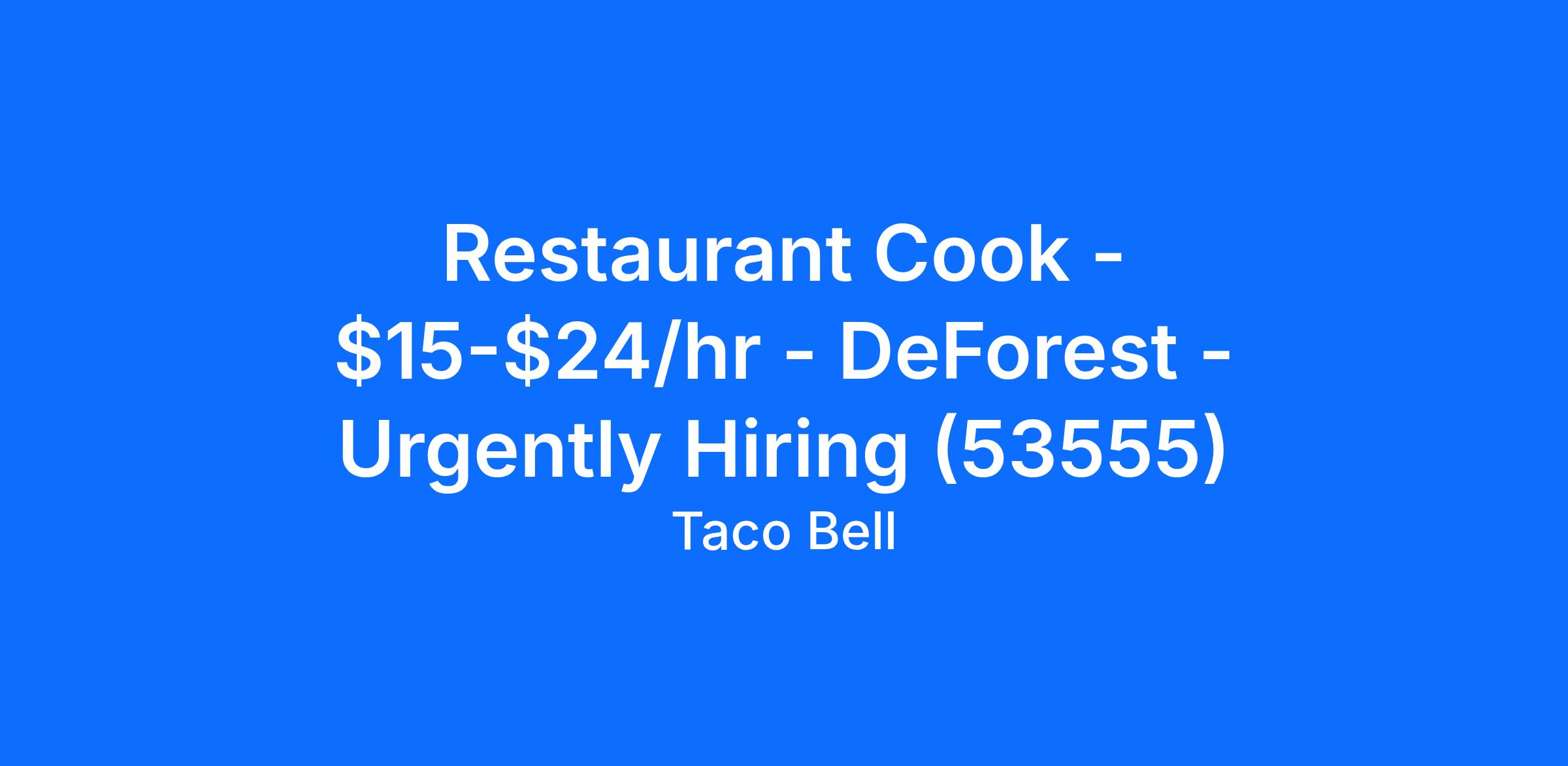 Restaurant Cook - $15-$24/hr - DeForest - Urgently Hiring (53555)