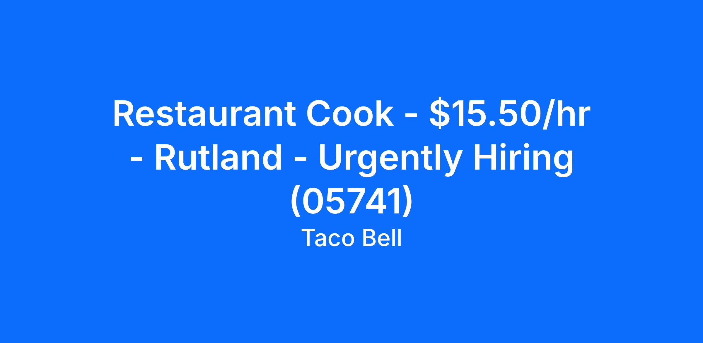Taco Bell- Rutland is looking for a Restaurant Cook to join our team in Rutland, VT. This position is full time or part time. The restaurant cook is responsible for food preparation that meets or exceeds hospitality and service standards and must be able to prepare all foods to meet quantity and deadline requirements. As a restaurant cook at Taco Bell- Rutland you will prepare food items according to the menu, recipes, and special dietary or nutritional restrictions. You will also determine food and supplies needed to keep the kitchen running and stocked during service. Cooks make sure that proper health procedures are followed. You should maintain or exceed standards of appearance, cleanliness, hygiene, and health. Previous cook, line cook, prep cook, sous chef or other back of house (BOH) experience is beneficial. High school diploma or equivalent preferred but not mandatory. Food Handlers certification or willingness to obtain. Most importantly, a strong work ethic and a willingness to learn will help you go far at Taco Bell- Rutland.
