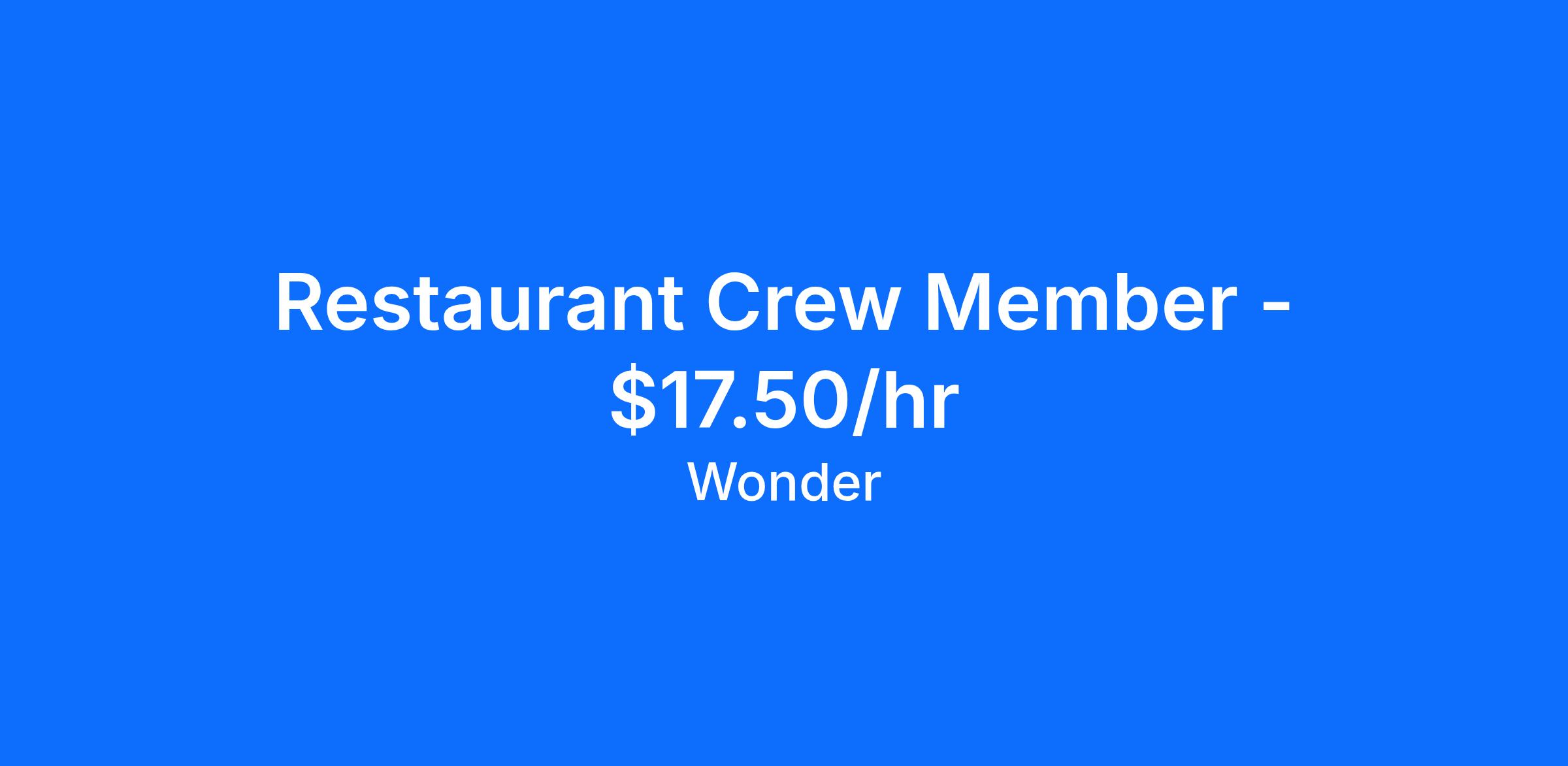 Restaurant Crew Member - $17.50/hr