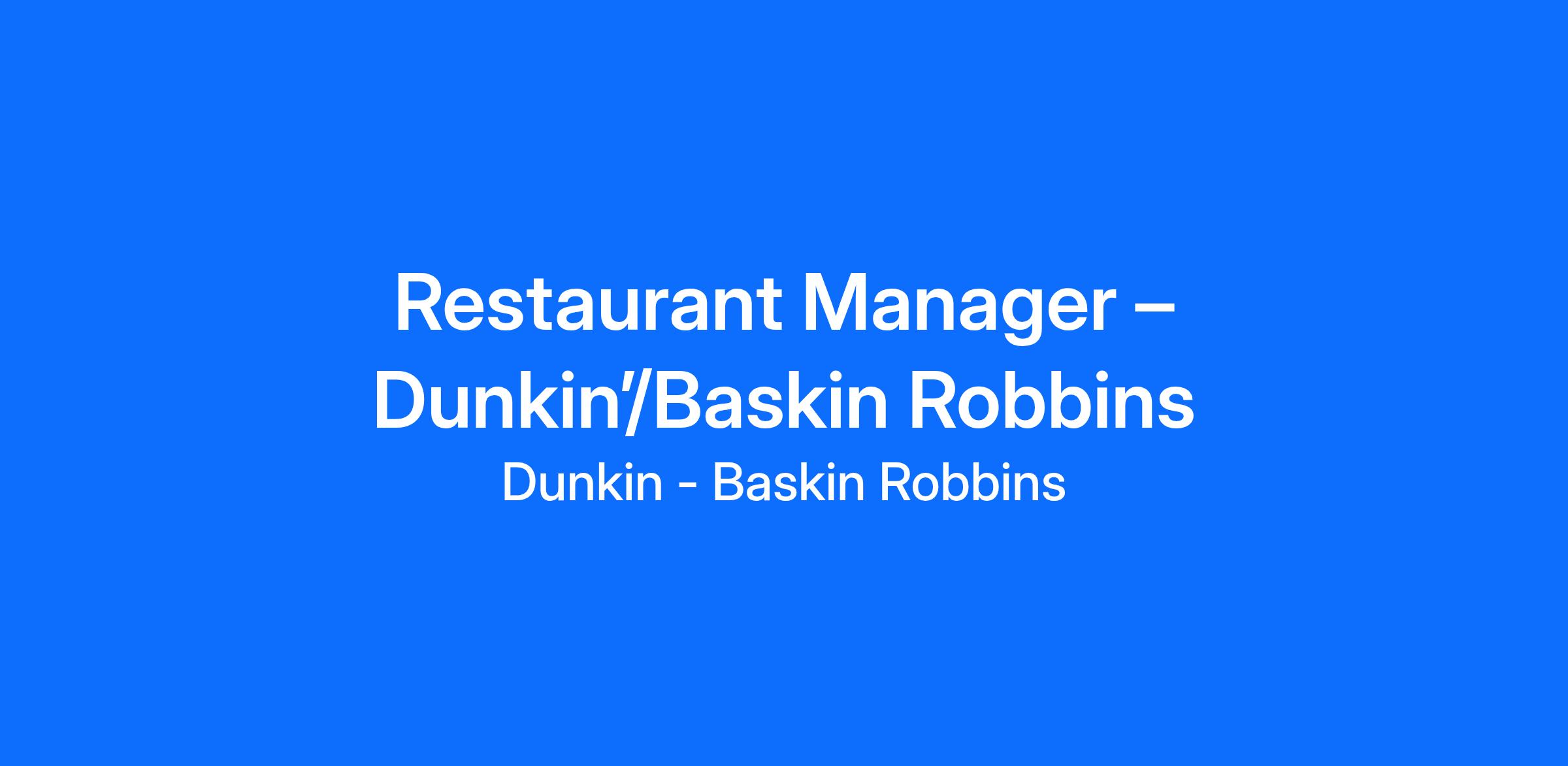 Restaurant Manager – Dunkin’/Baskin Robbins