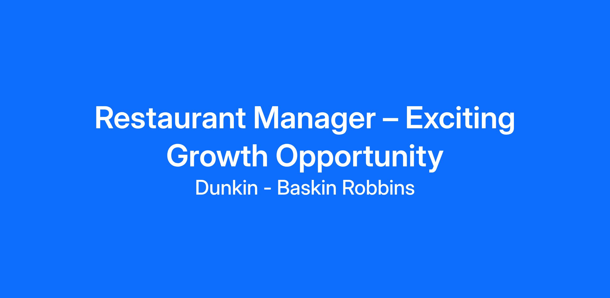 Restaurant Manager – Exciting Growth Opportunity