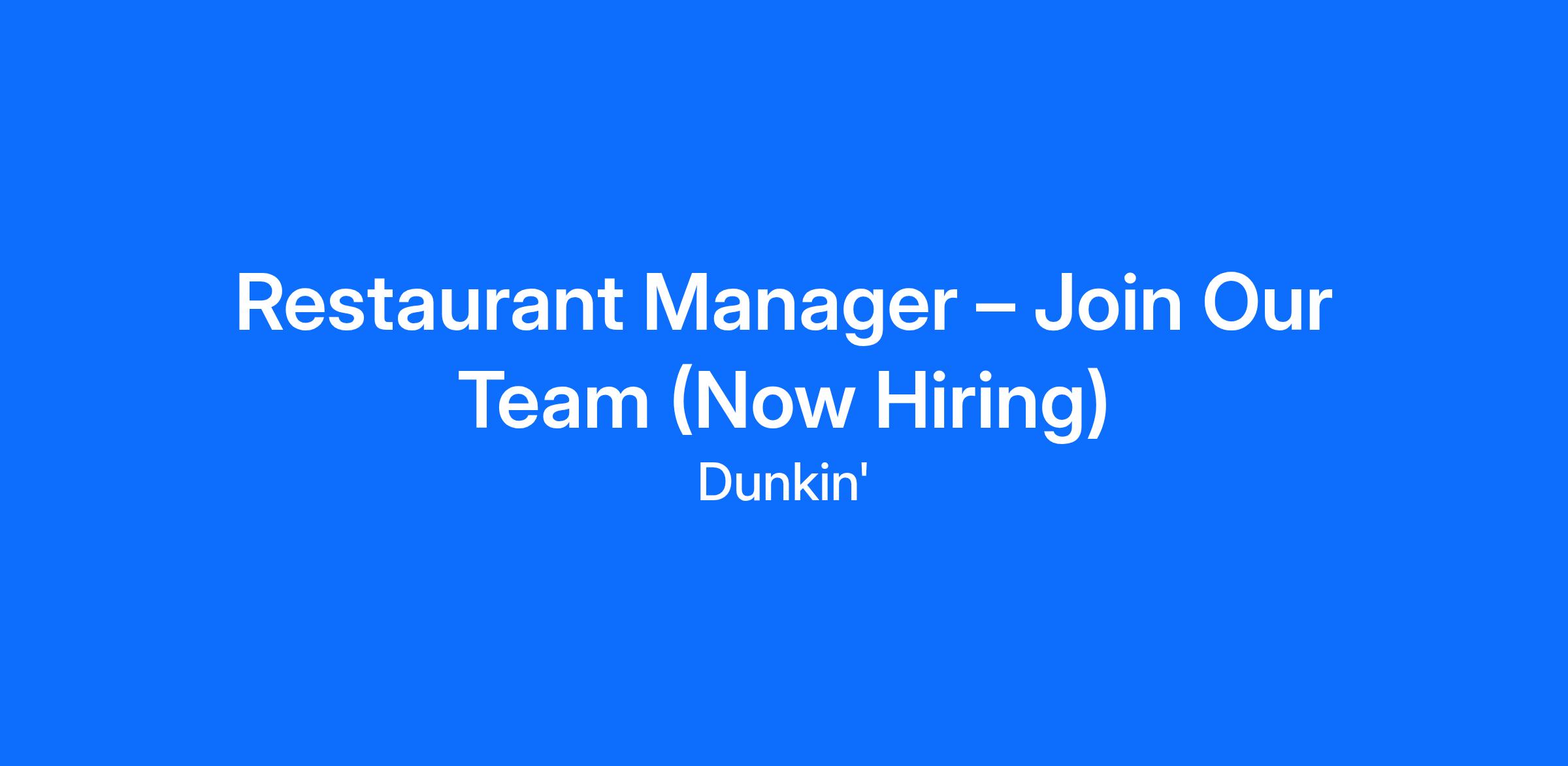 Restaurant Manager – Join Our Team (Now Hiring)
