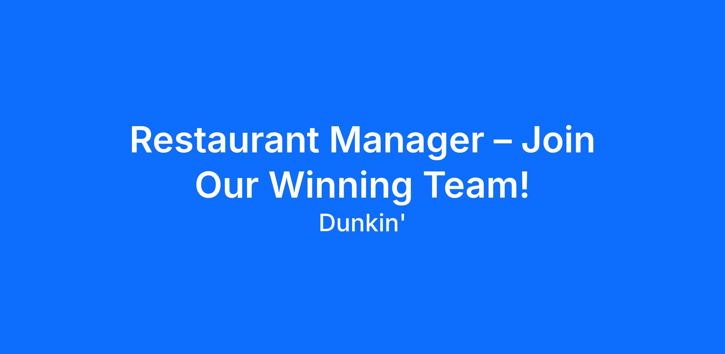 Restaurant Manager – Join Our Winning Team!