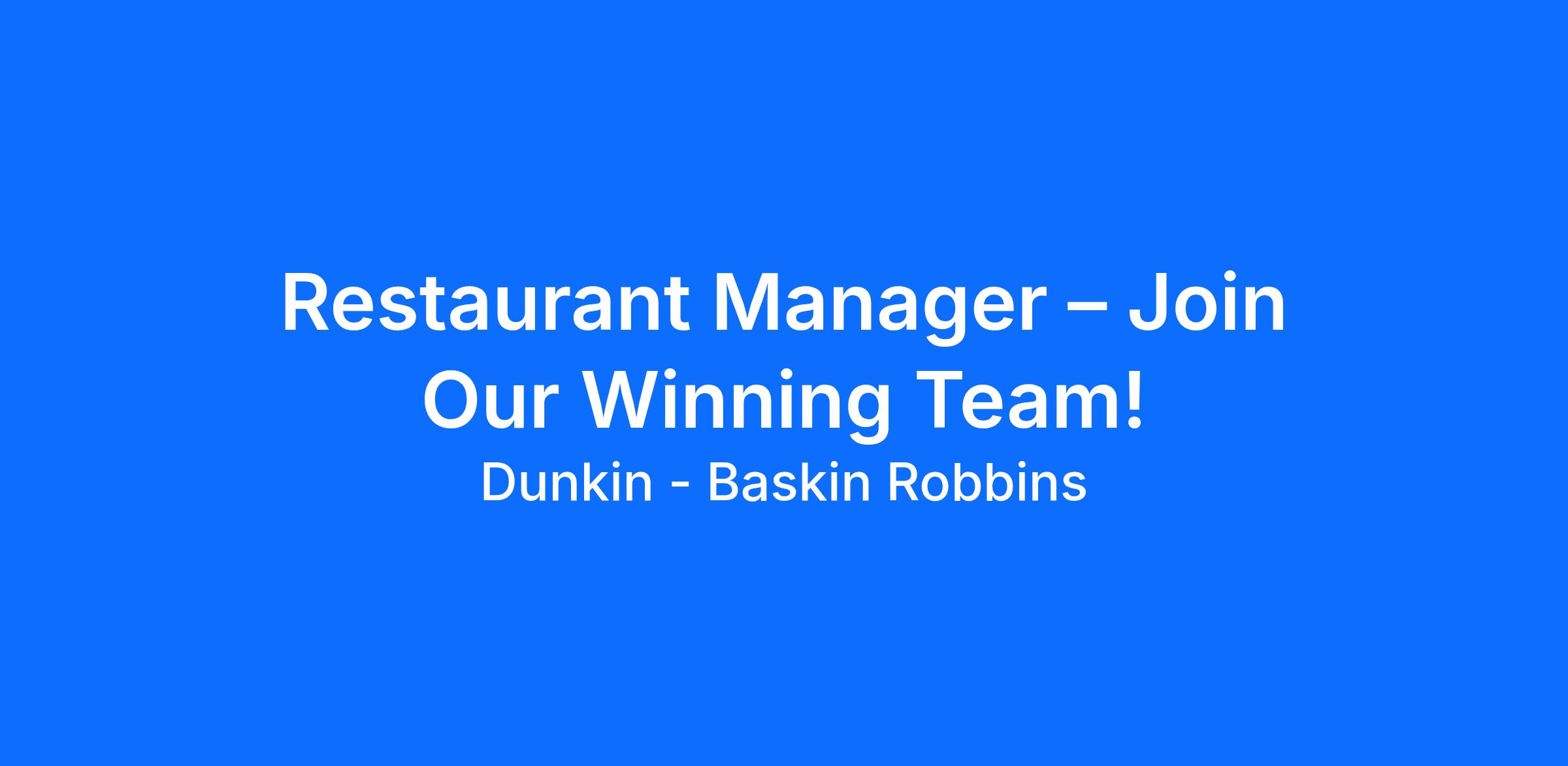Restaurant Manager – Join Our Winning Team!