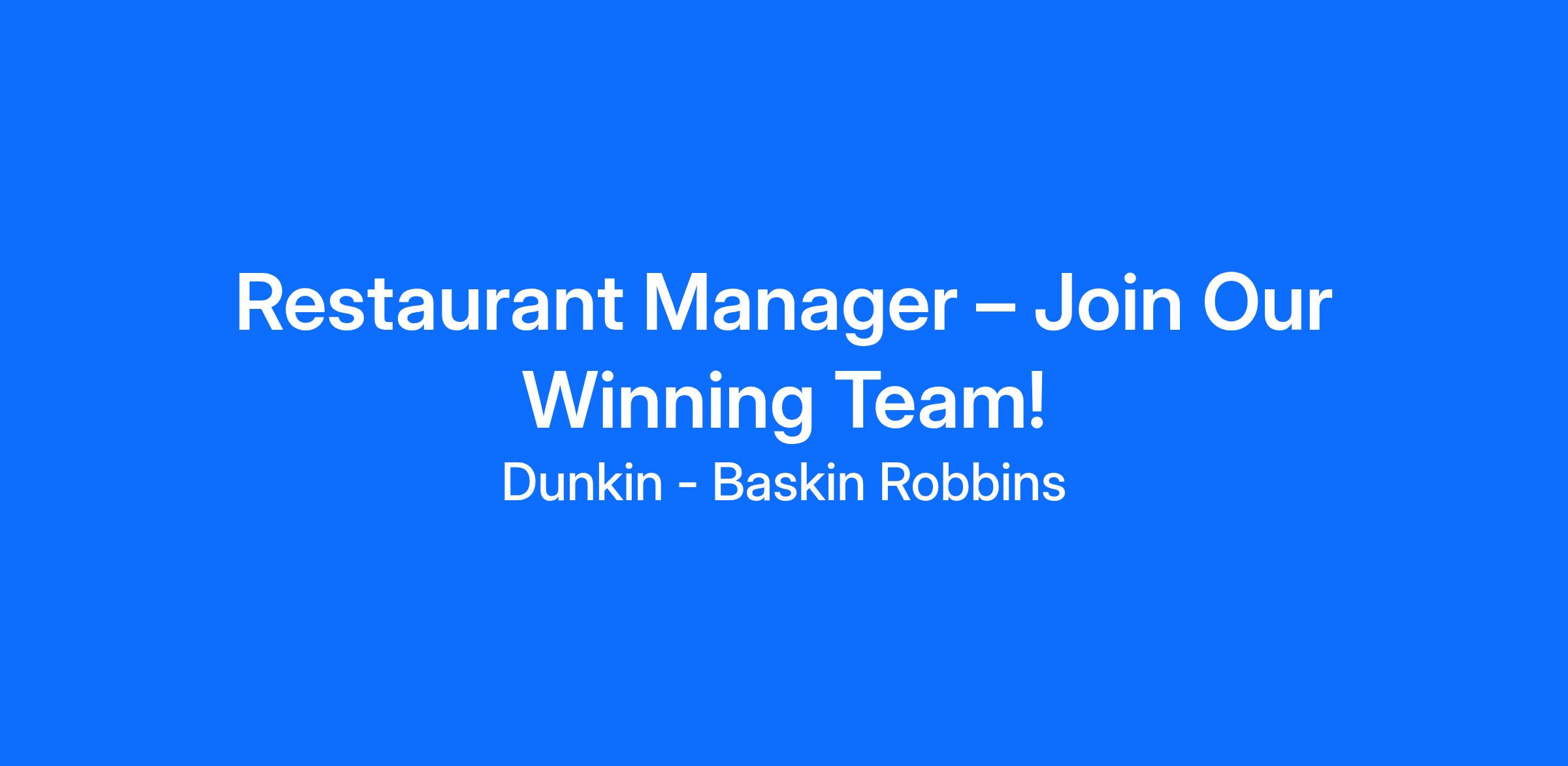Restaurant Manager – Join Our Winning Team!