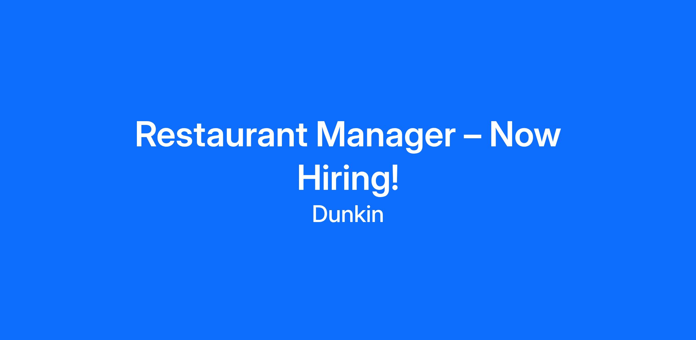 Restaurant Manager – Now Hiring!