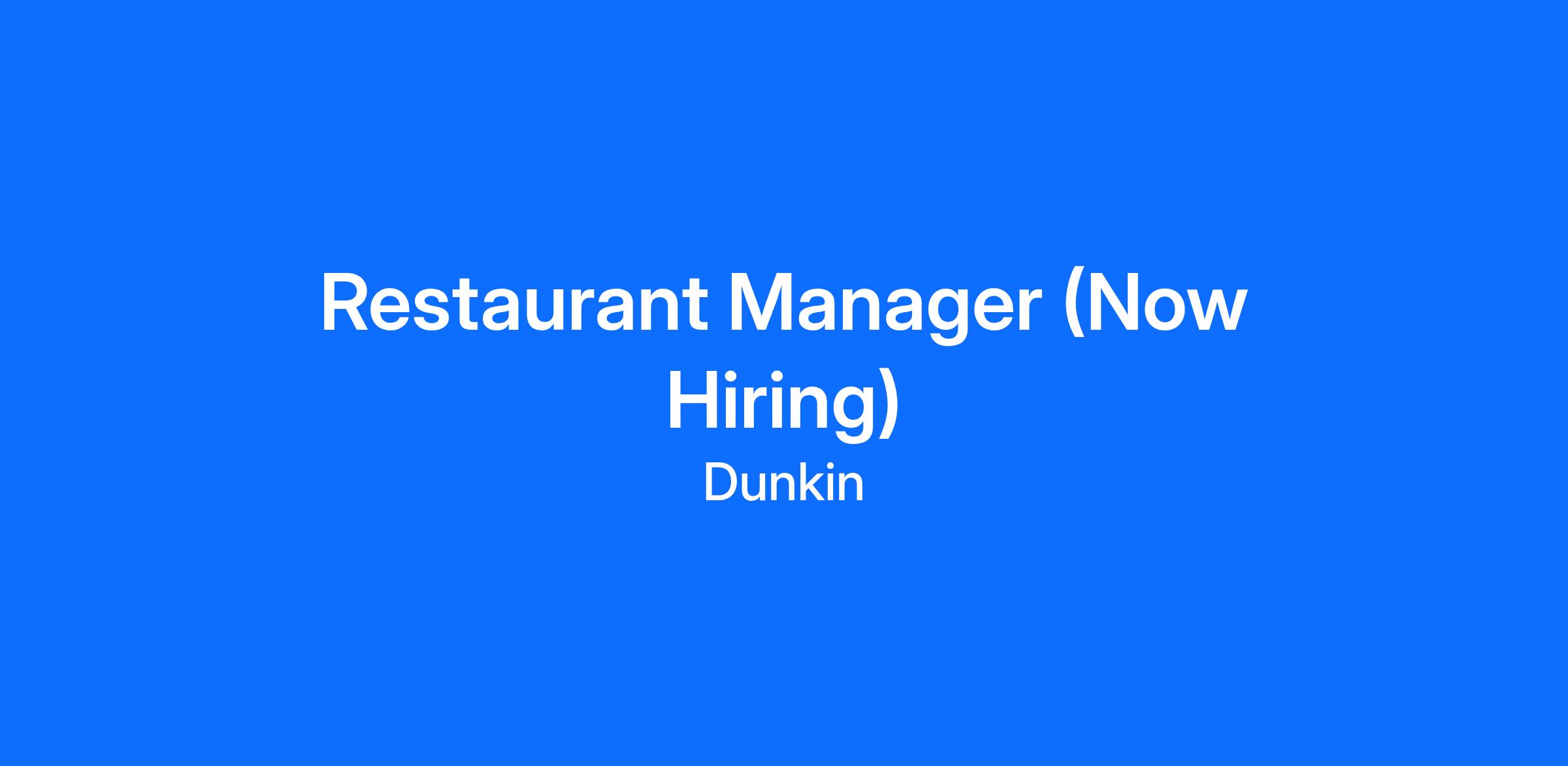 Restaurant Manager (Now Hiring)