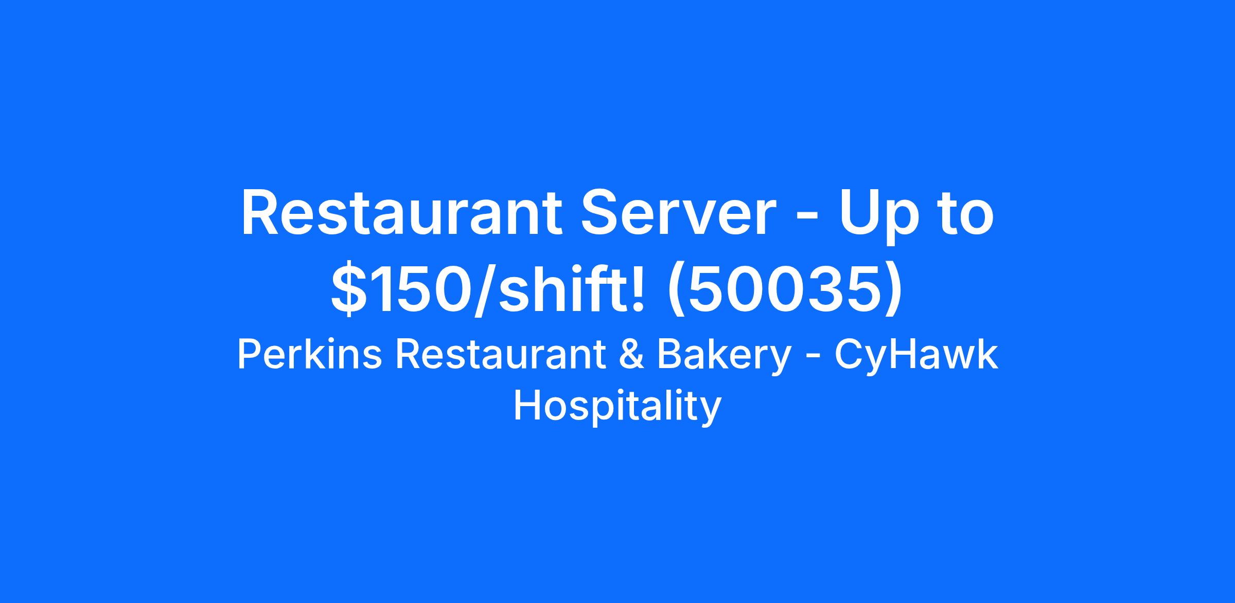 Perkins Restaurant is now hiring Servers for our Perkins Restaurant in Altoona.