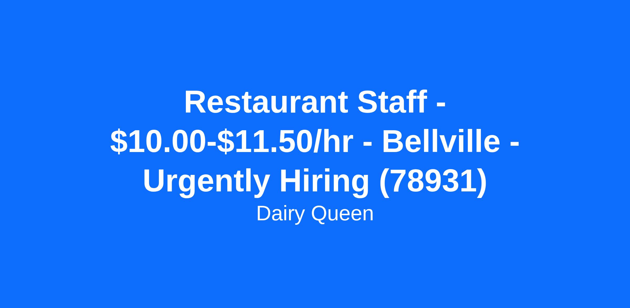 Dairy Queen - Bellville is looking for a full time or part time Restaurant Staff team member to join our team in Bellville, TX. The Restaurant Staff team member is responsible for customer service and commitment to excellence through meeting or exceeding hospitality and service standards.
