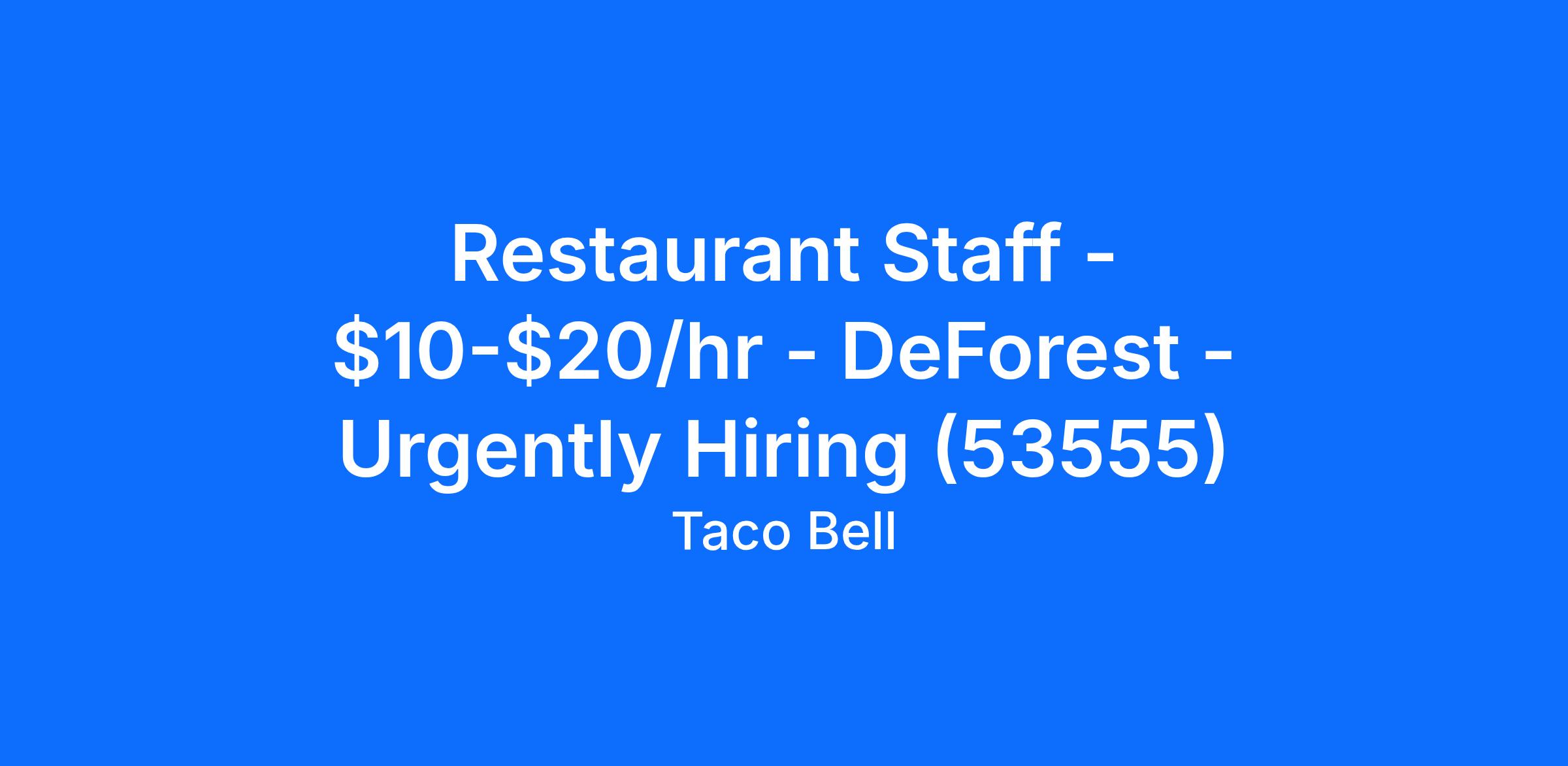 Restaurant Staff - $10-$20/hr - DeForest - Urgently Hiring (53555)