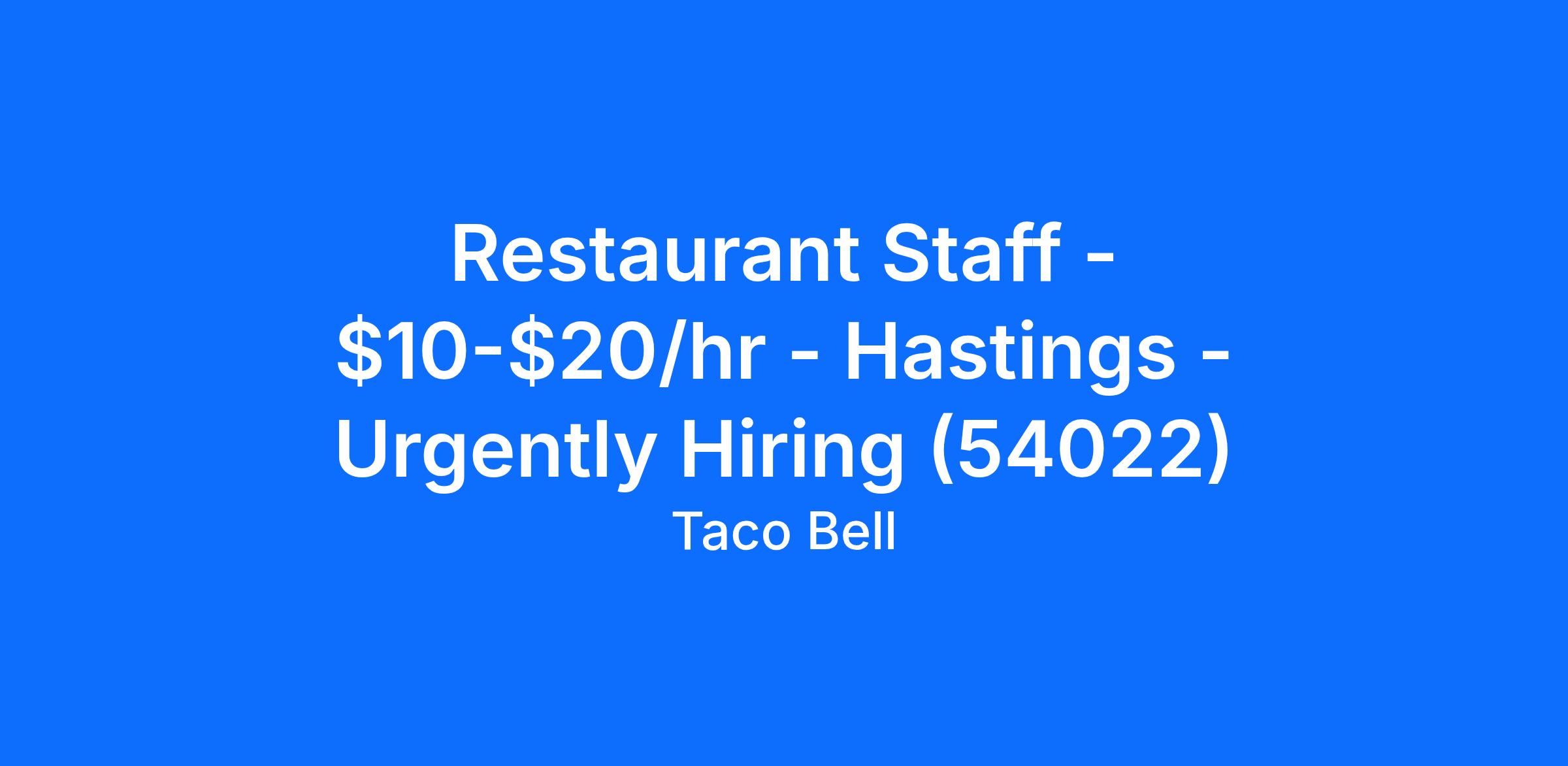Restaurant Staff - $10-$20/hr - Hastings - Urgently Hiring (54022)