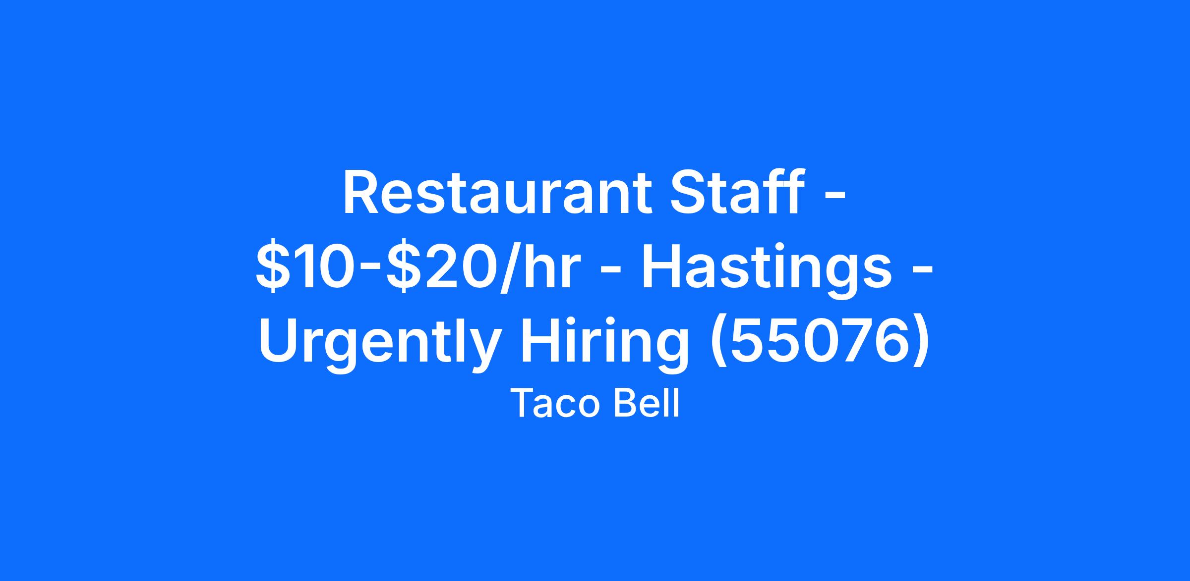 Restaurant Staff - $10-$20/hr - Hastings - Urgently Hiring (55076)