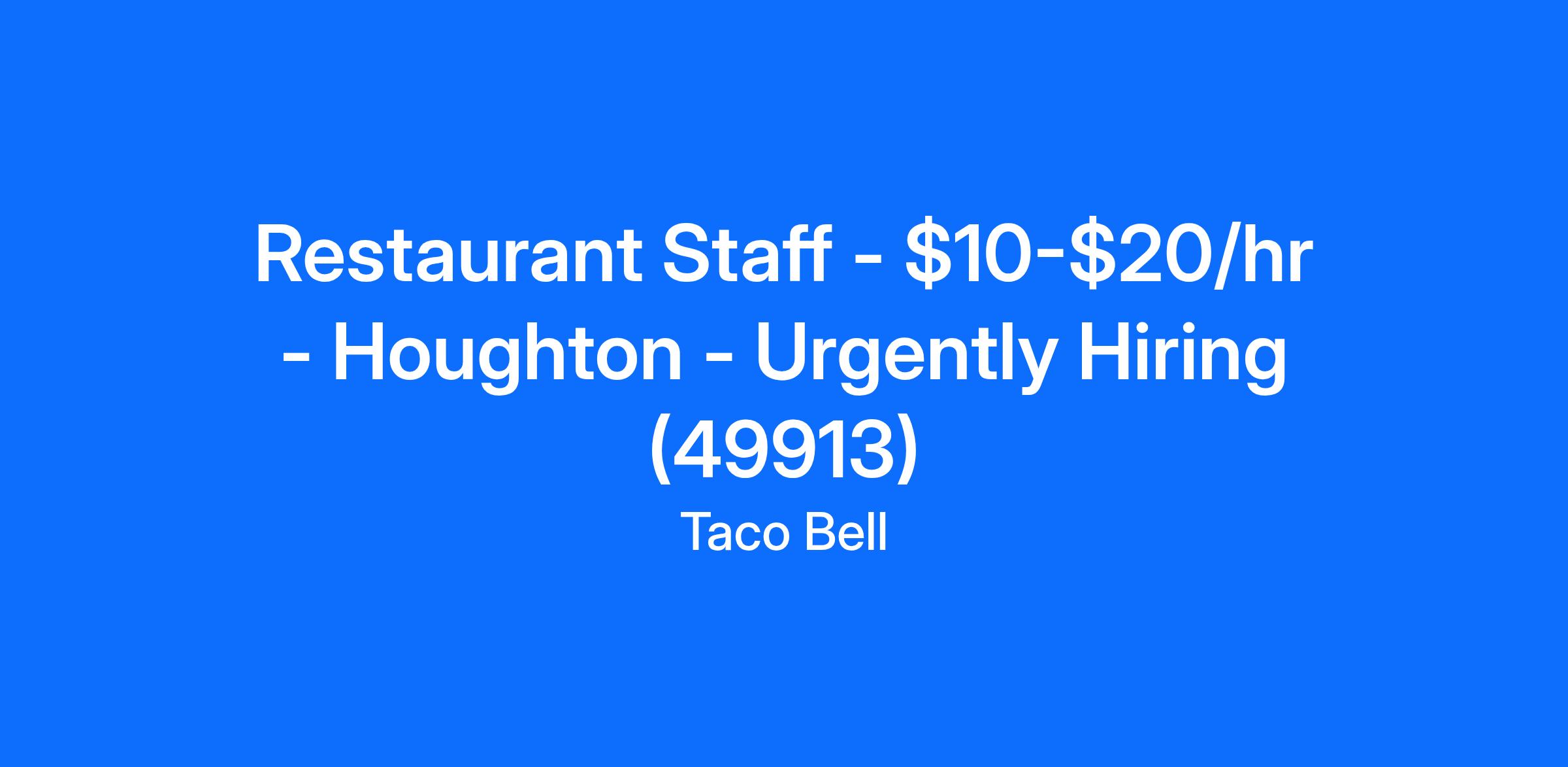 Restaurant Staff - $10-$20/hr - Houghton - Urgently Hiring (49913)