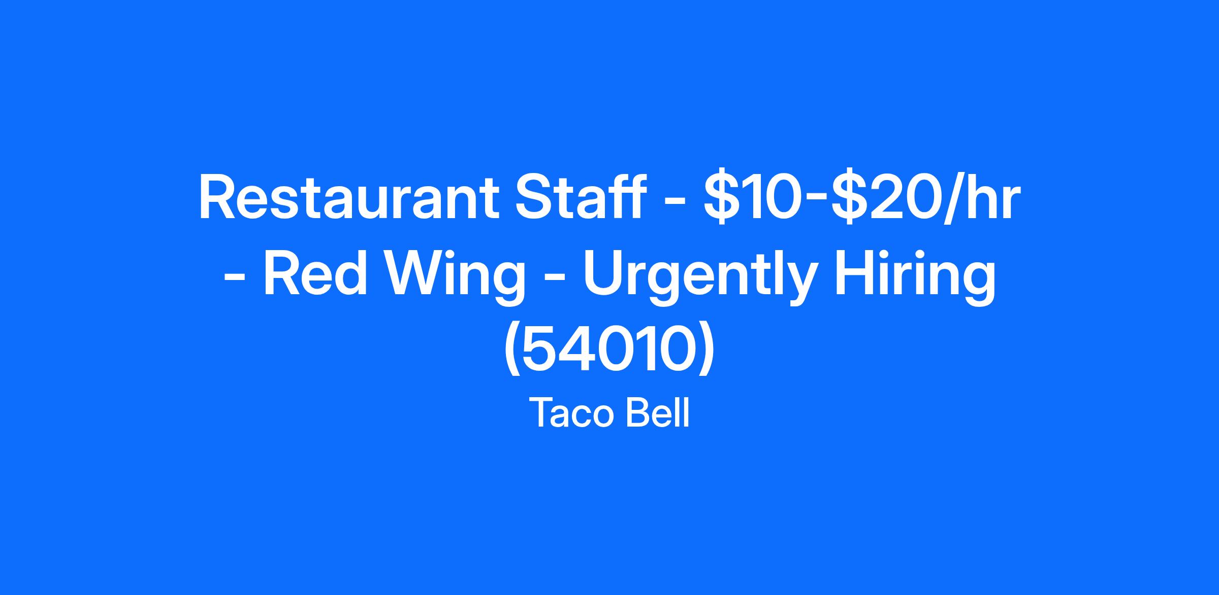 Restaurant Staff - $10-$20/hr - Red Wing - Urgently Hiring (54010)