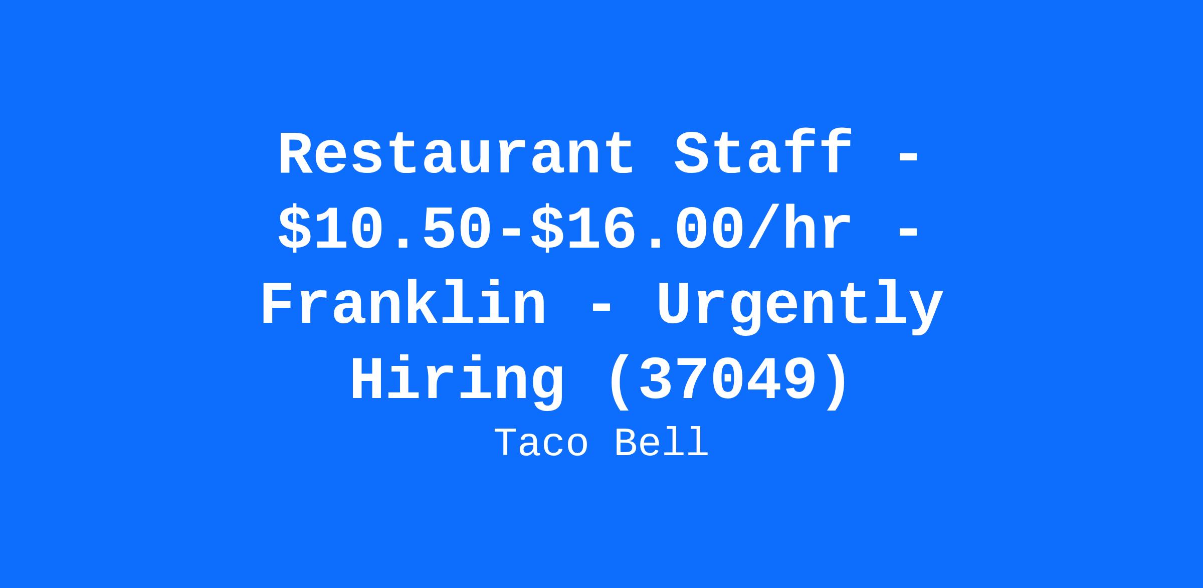 Restaurant Staff - $10.50-$16.00/hr - Franklin - Urgently Hiring (37049)