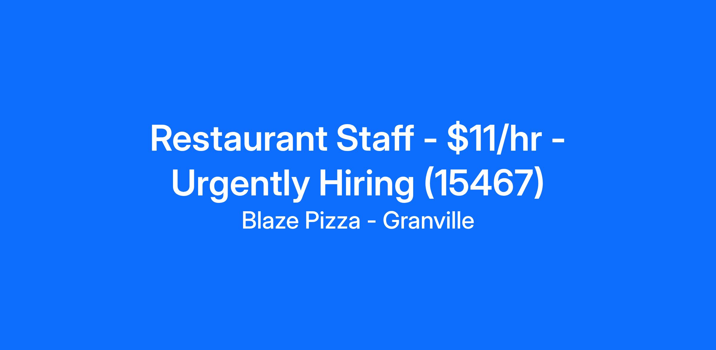 We look forward to seeing you for an interview for our full time or part time Restaurant Staff role at Blaze Pizza - Granville soon!