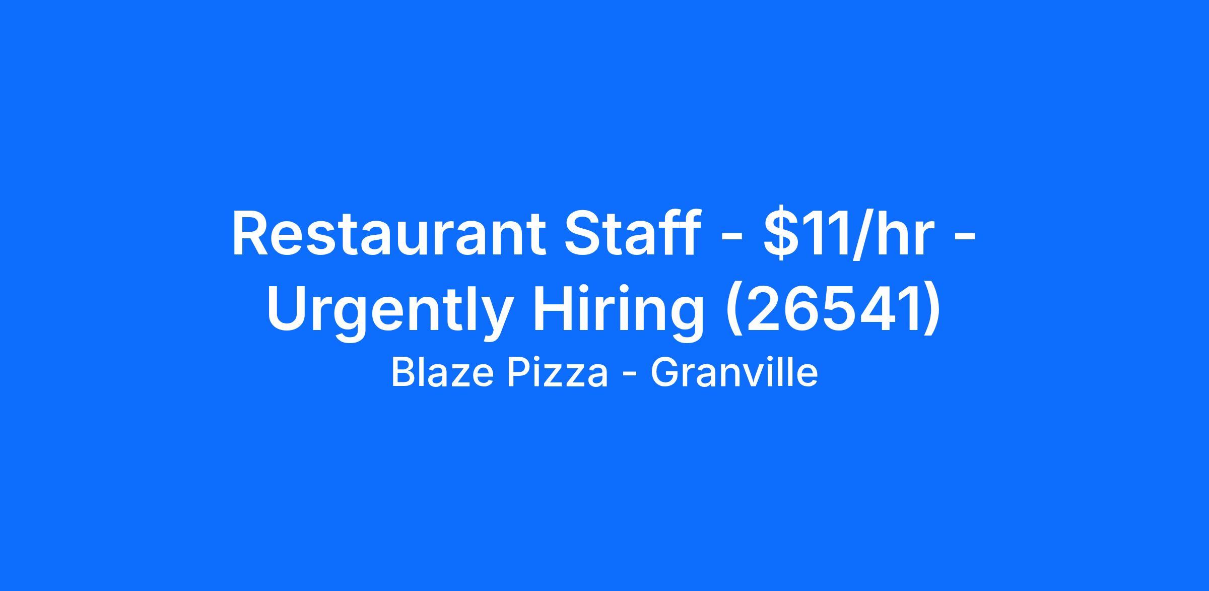 We look forward to seeing you for an interview for our full time or part time Restaurant Staff role at Blaze Pizza - Granville soon!