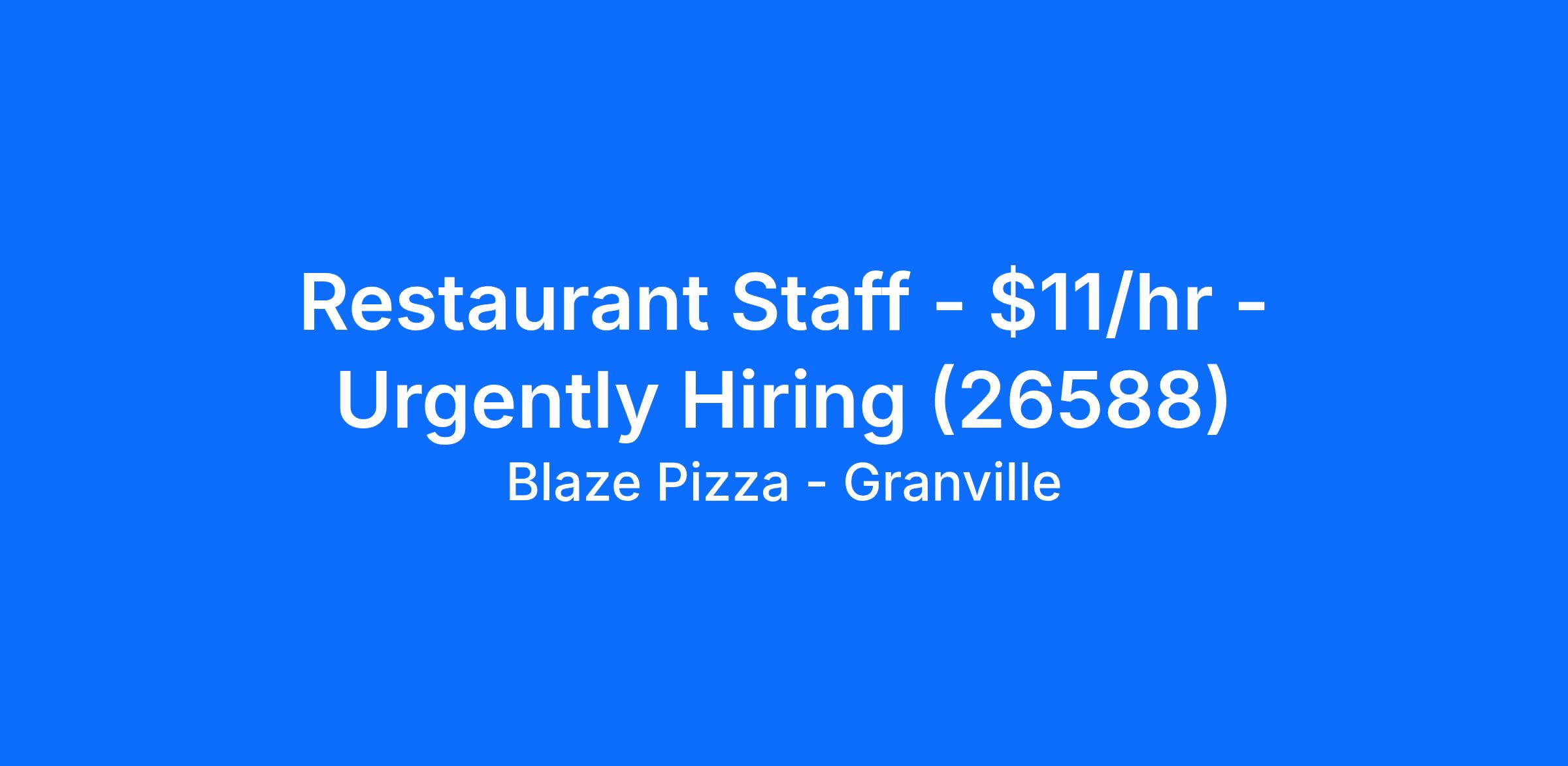 We look forward to seeing you for an interview for our full time or part time Restaurant Staff role at Blaze Pizza - Granville soon!