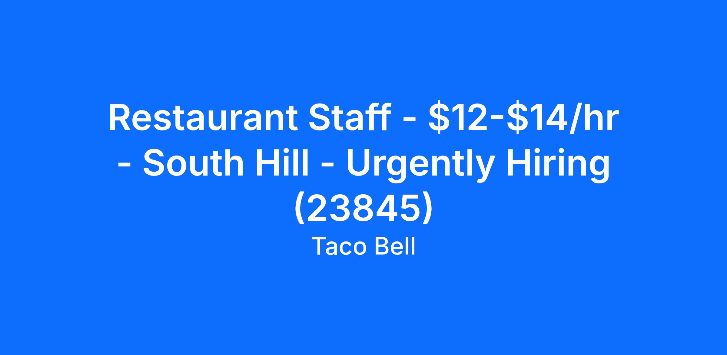 Taco Bell / KFC - South Hill is looking for a full time or part time Restaurant Staff team member to join our team in South Hill, VA. The Restaurant Staff team member is responsible for customer service and commitment to excellence through meeting or exceeding hospitality and service standards.