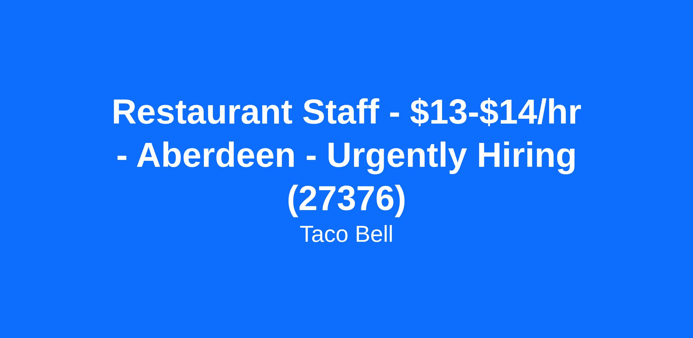 Taco Bell - Aberdeen is looking for a full time or part time Restaurant Staff team member to join our team in Aberdeen, NC. The Restaurant Staff team member is responsible for customer service and commitment to excellence through meeting or exceeding hospitality and service standards.