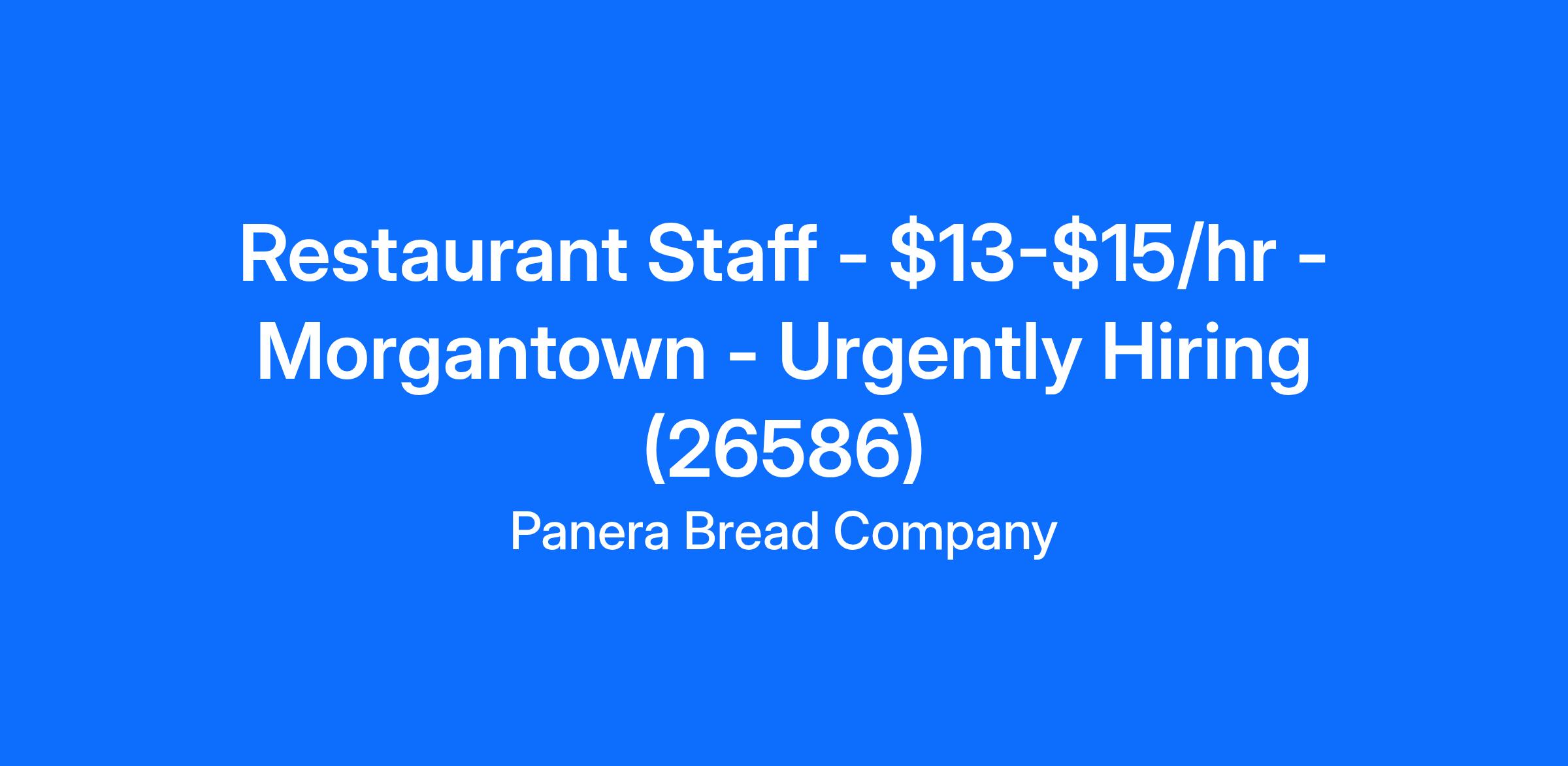 Panera Bread - Patterson Dr is looking for a full time or part time Restaurant Staff team member to join our team in Morgantown, WV. The Restaurant Staff team member is responsible for customer service and commitment to excellence through meeting or exceeding hospitality and service standards.