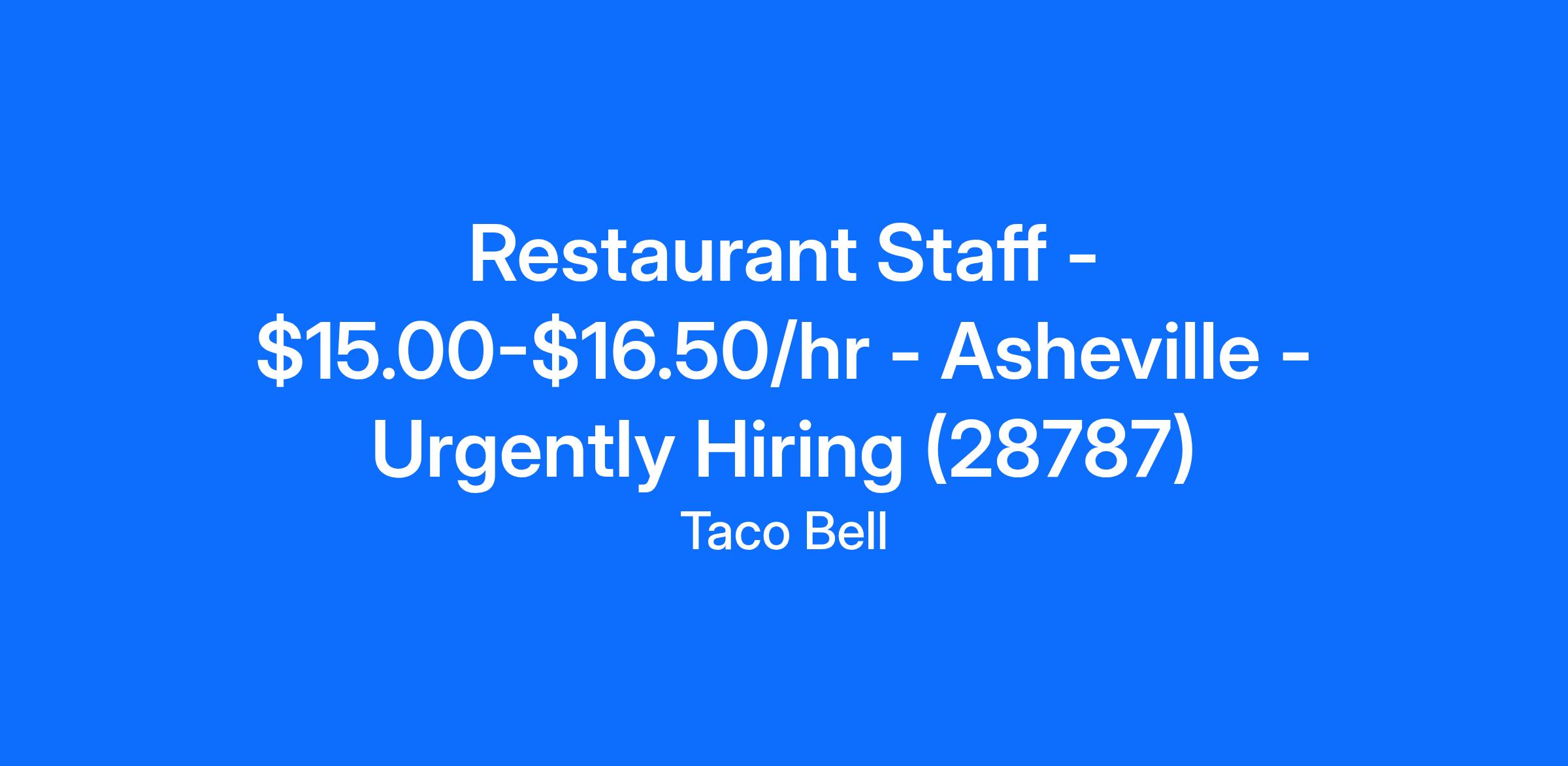 Restaurant Staff - $15.00-$16.50/hr - Asheville - Urgently Hiring (28787)