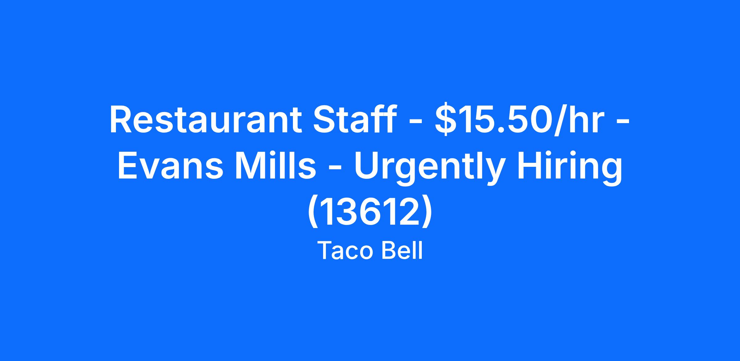 We look forward to seeing you for an interview for our full time or part time Restaurant Staff role at Taco Bell- Evans Mills soon!