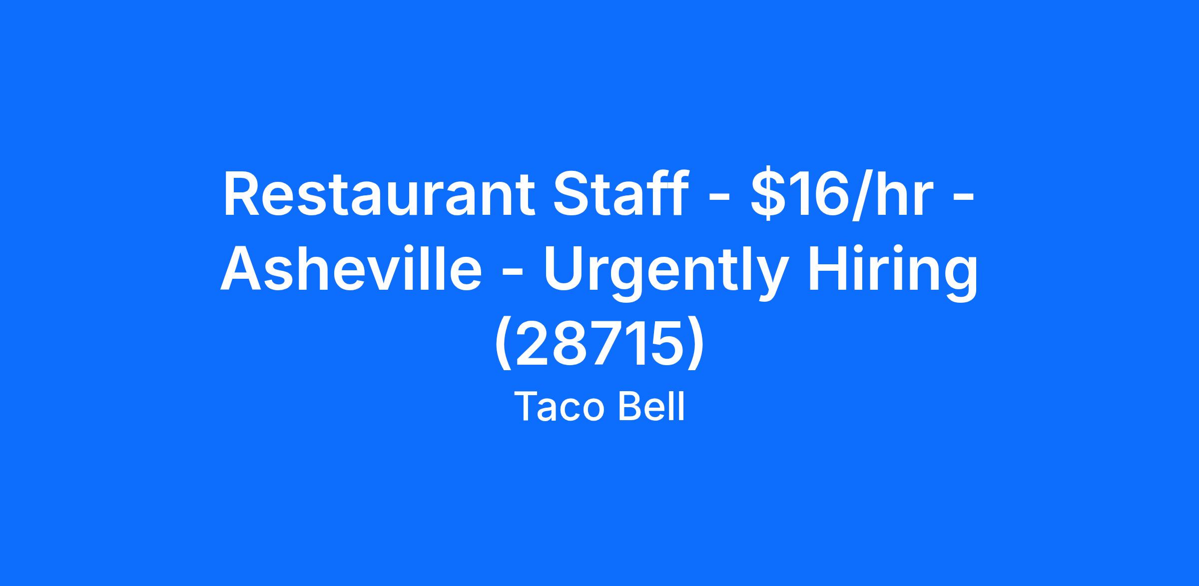 Restaurant Staff - $16/hr - Asheville - Urgently Hiring (28715)