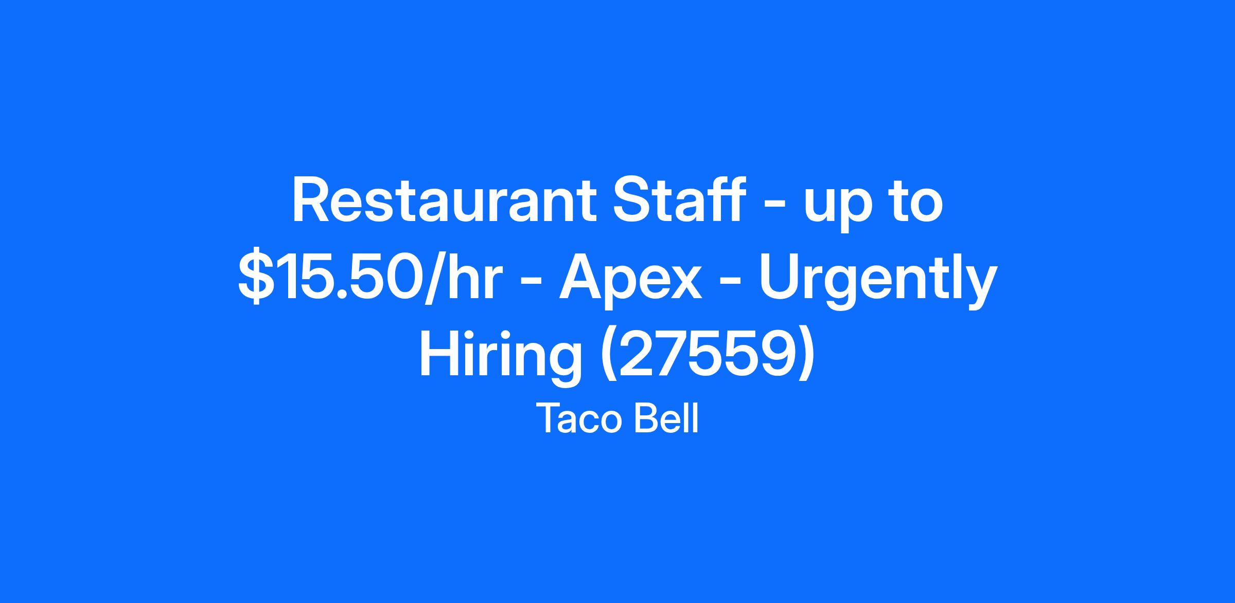Restaurant Staff - up to $15.50/hr - Apex - Urgently Hiring (27559)
