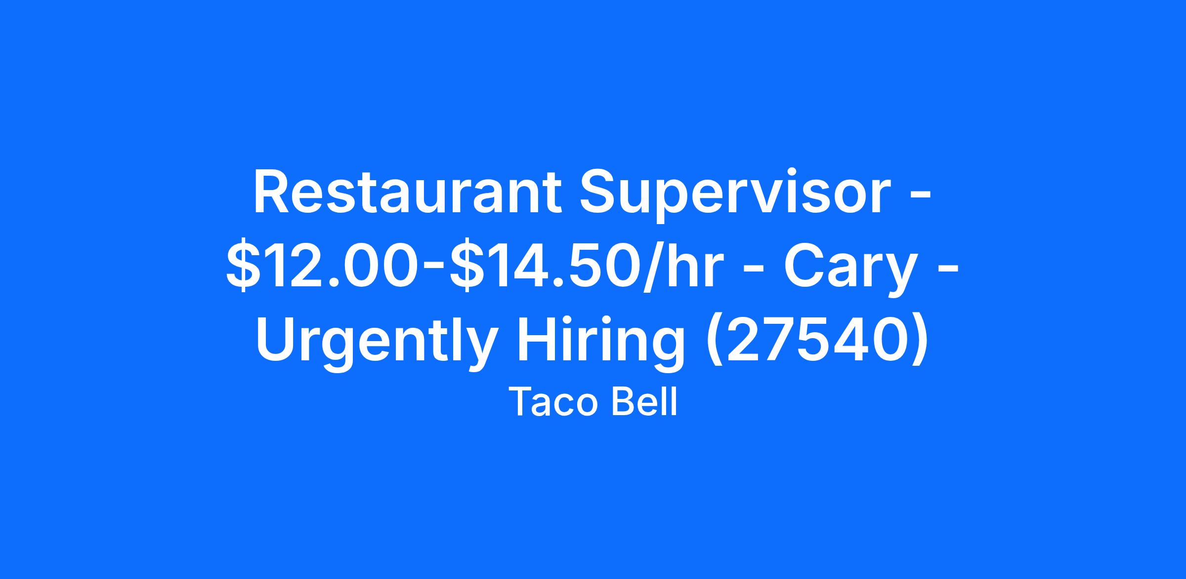 Restaurant Supervisor - $12.00-$14.50/hr - Cary - Urgently Hiring (27540)